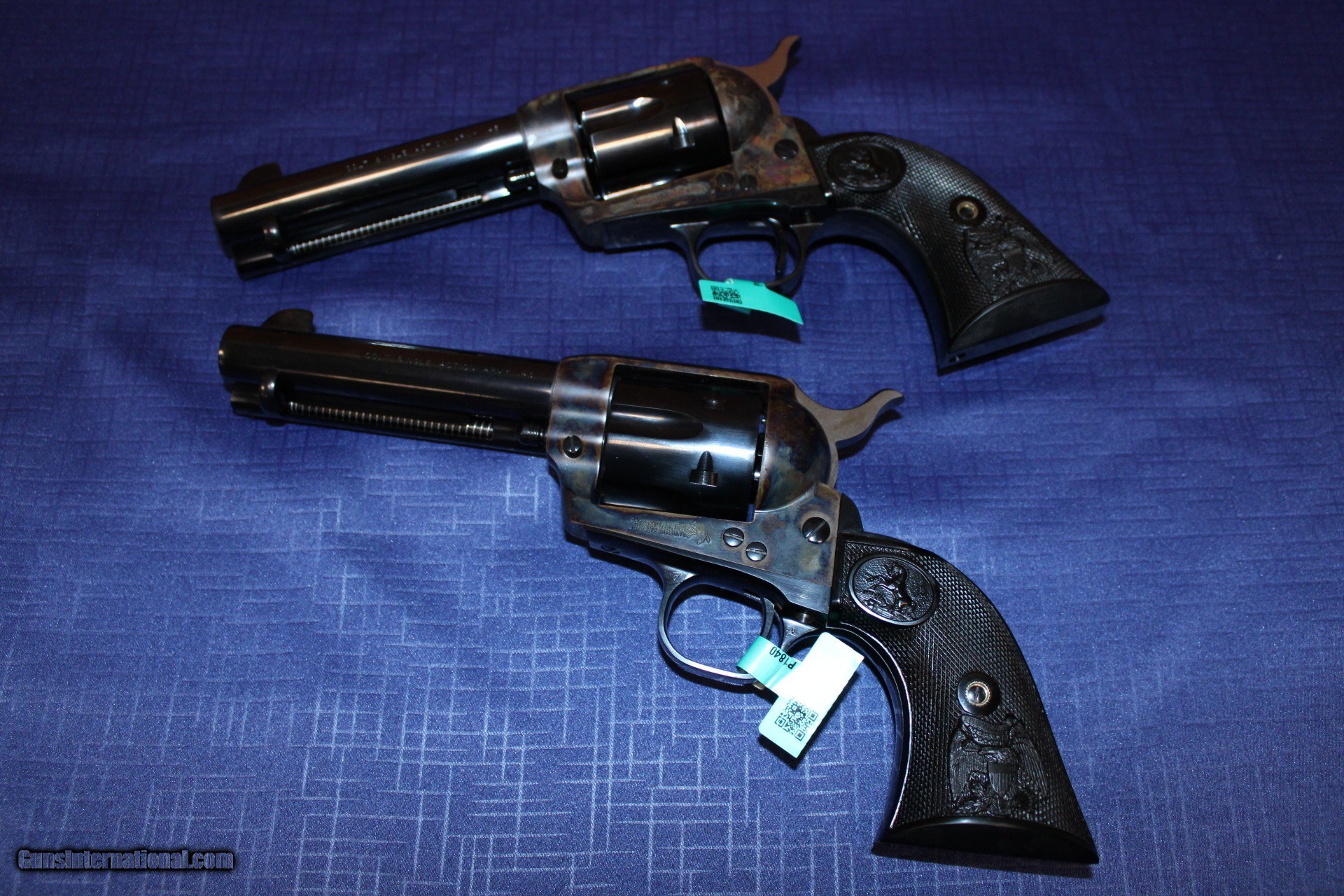Description: A Consecutive Pair of Brand New Colt SAA in 45 Colt with a 4.75" barrel, blue/case color finishes. Both guns are factory new, current production and come with boxes. *Legendary Guns in Phoenix AZ 602-242-1195 Hours of operation Tuesday-Friday 10-6 Sat 10-5 Closed Sundays & Mondays *We accept all Major credit cards. We DO NOT charge an additional fee for Credit Cards. We also accept Postal Money orders or Certified Bank Checks{Check & Money order payments must arrive within 7 days of initial agreement and will be held for 3 days before items are shipped} *Shipping is $50 for rifles/shotguns {AK & HI Extra} and $35 for handguns. Arizona Residents Must Pay Sales Tax. We DO NOT ship Internationally. *We offer a 60 day layaway on purchases of $500 or more. Items require 1/3 of the total price as down payment which is NON-REFUNDABLE and you have 60 days to pay off the balance. *Please call or email with any questions and to confirm availability before buying. We are happy to answer all questions. All items listed are also for sale at our Phoenix, AZ location *We offer a 3 day inspection period on USED FIREARMS ONLY, We accept returns within the 3 day inspection period with NO REFUNDS ON SHIPPING CHARGES and a 10% restocking fee. *Trades are welcome for customers who can visit our Phoenix, AZ location, We DO NOT engage in online or mail in trades. SOLD Handgun Caliber: .45 Colt Manufacturer: Colt Model: SAA Condition: New |