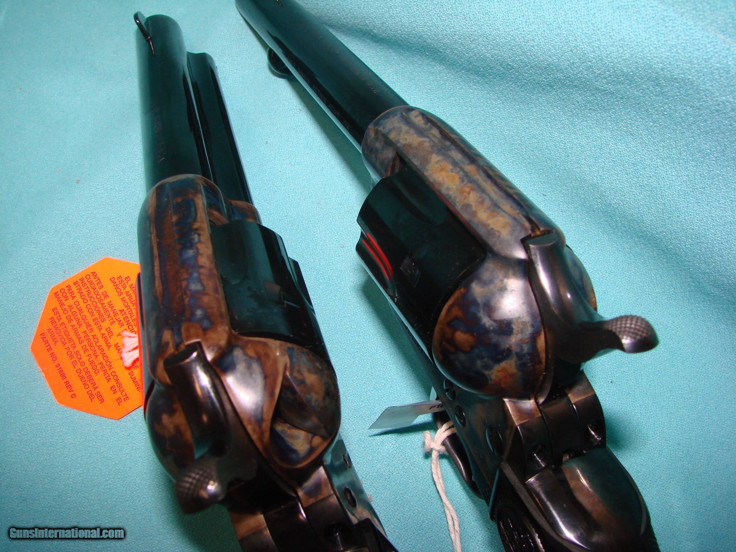 Description: Brand New current production set of Colt SAA with 5.5 barrels in 45Colt with blue/case color finishes. Both guns are brand new, consecutive numbered guns. *Legendary Guns in Phoenix AZ 602-242-1195 Hours of operation Tuesday-Friday 10-6 Sat 10-5 Closed Sundays & Mondays *We accept all Major credit cards. We DO NOT charge an additional fee for Credit Cards. We also accept Postal Money orders or Certified Bank Checks{Check & Money order payments must arrive within 7 days of initial agreement and will be held for 3 days before items are shipped} *Shipping is $50 for rifles/shotguns {AK & HI Extra} and $35 for handguns. Arizona Residents Must Pay Sales Tax. We DO NOT ship Internationally. *We offer a 60 day layaway on purchases of $500 or more. Items require 1/3 of the total price as down payment which is NON-REFUNDABLE and you have 60 days to pay off the balance. *Please call or email with any questions and to confirm availability before buying. We are happy to answer all questions. All items listed are also for sale at our Phoenix, AZ location *We offer a 3 day inspection period on USED FIREARMS ONLY, We accept returns within the 3 day inspection period with NO REFUNDS ON SHIPPING CHARGES and a 10% restocking fee. *Trades are welcome for customers who can visit our Phoenix, AZ location, We DO NOT engage in online or mail in trades. SOLD Handgun Caliber: .45 Colt Manufacturer: Colt Model: SAA Condition: New |