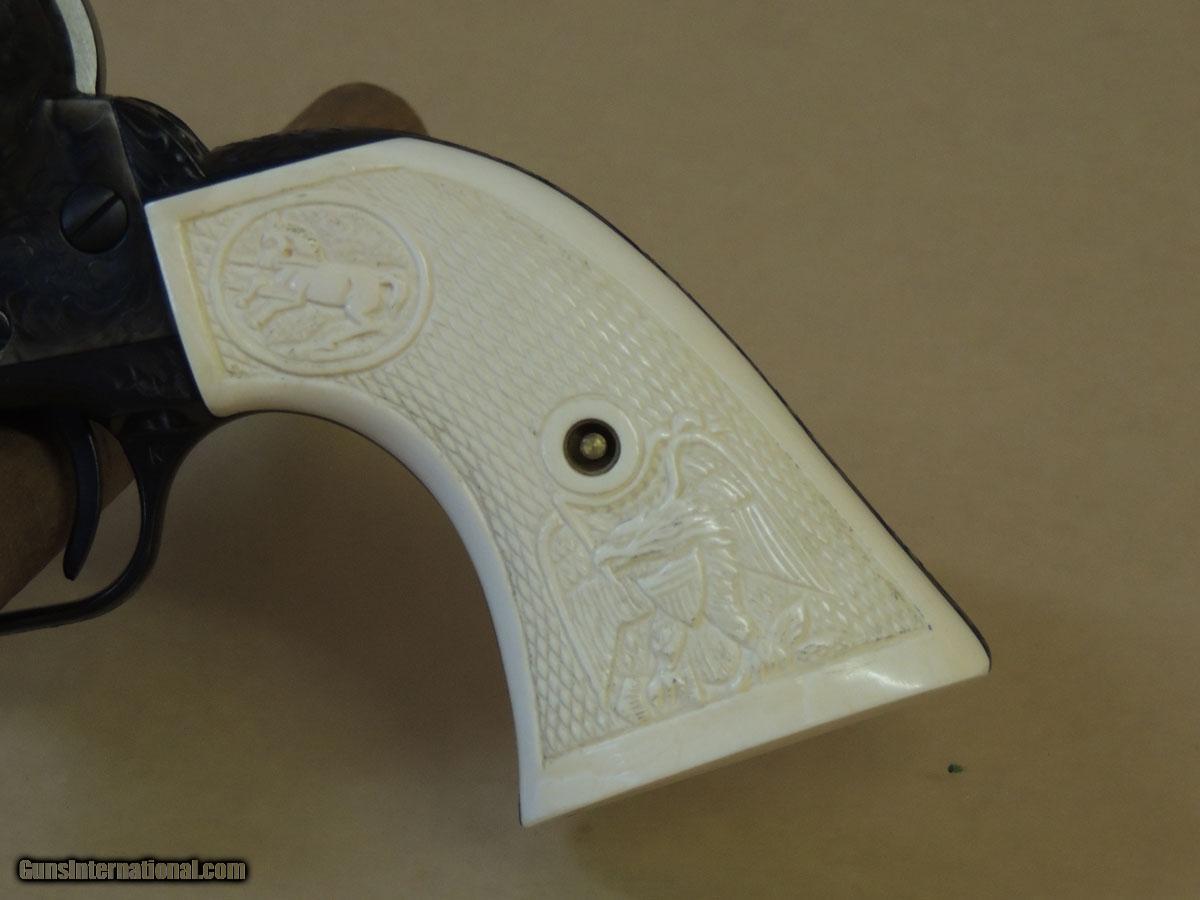Description: COLT SAA FACTORY ENGRAVED 45LC, 7 1/2" BARREL, BLUE/ CASE COLOR, FACTORY "D" ENGRAVED, CARVED IVORY GRIPS (VERY VERY SCARCE THAT THESE LETTER), NEW CONDITION IN CASE, THIRD GENERATION, CIRCA 1981 $7500 ******* (PLEASE REFERENCE OUR INVENTORY NUMBER) (PAYMENT OPTIONS) (Postal Money Order) (Cashiers Checks) (Personal Checks (Item held until Check Cleared) (Layaway 120 days same as cash - Deposit required- Our Terms and Conditions Apply) (Credit Cards Visa or Master Card 4% fee added to total sale) (GA residents 7% sales Tax Applies) (FAX 888-597-1394) (BEST PHONE/TEXT 229-424-8450) (Shipping $35.00) SOLD |