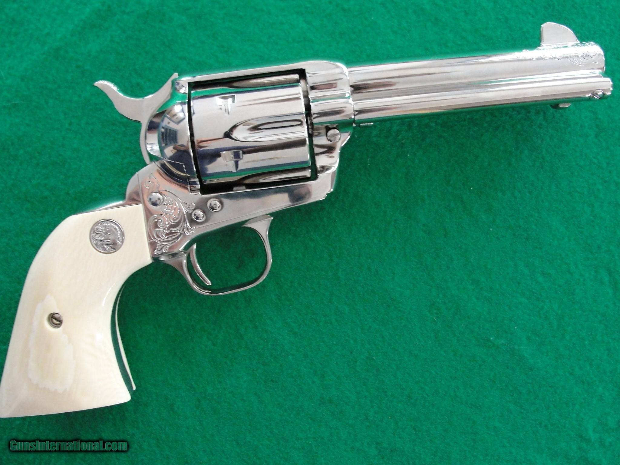 Colt SAA Factory Engraved Nickel 45 with Ivories, Box, Nice!
