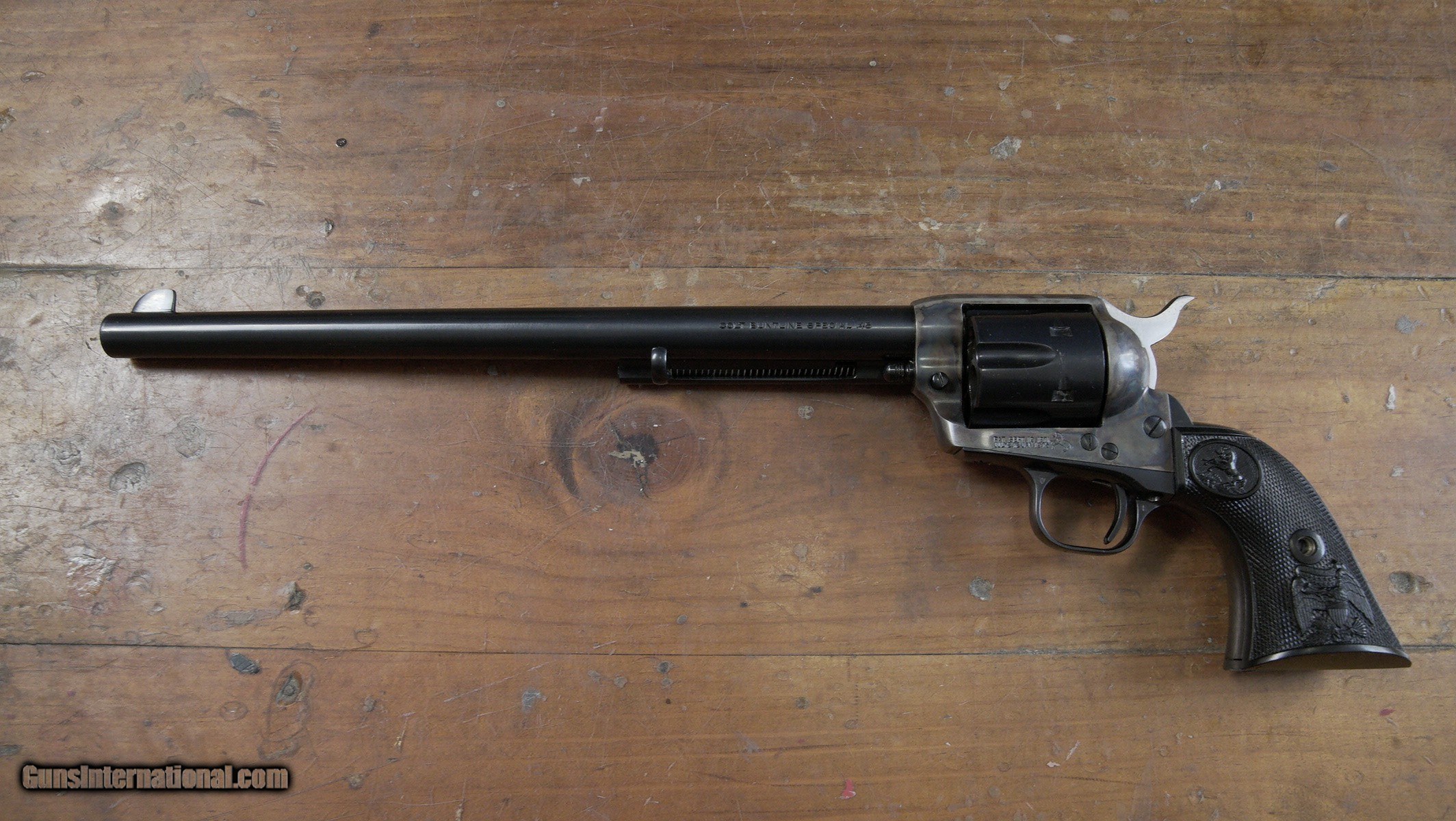 Description: Colt SAA Model P1740 Buntline in .45 Long Colt. 12" barrel. Looks to have been fired but excellent overall condition. No box. 3rd Generation gun with SN: SA44867. SOLD Handgun Caliber: .44 Colt Manufacturer: Colt Model: P1740 Serial Number: SA44867 Barrel Length: 12 Bore: excellent Chambers: excellent Condition: Excellent Metal Condition: near new Bore Condition: Excellent Action: single action |