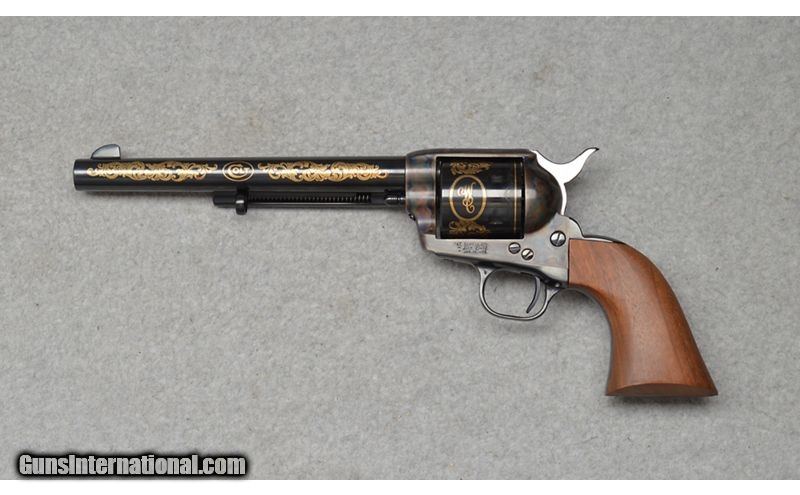 Description: Colt Single Action Army Winchester & Colt commerotive in excellent condition with color case-hardened frame and gold inlay throughout. Features the Colt & Winchester marking on the cyinder and "Col. Sam Colt" Signed on the back strap. SN: 2289WC .44 S&W Special SOLD Metal Condition: Excellent Wood Condition: Excellent Bore Condition: Clean Barrels: 7 1/2 Weight: 2 lb 7 oz Item Location: Fort Worth, TX |