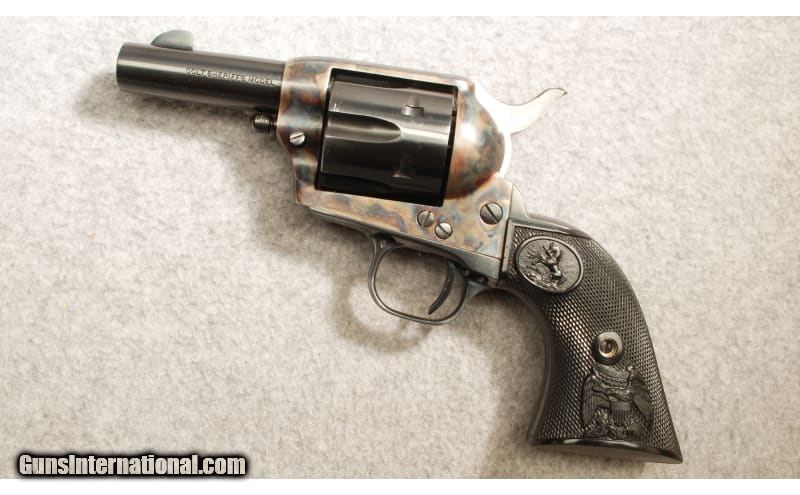 Description: For your consideration, Colt Third Generation Sheriff's Model Single Action Army Revolver in excellent condition. This revolver is chambered in .44-40 Winchester. It features hard plastic grips and a color casehardened finish. Slight drag line on the cylinder. Serial Number is SA38472. .44-40 Winchester SOLD Metal Condition: Excellent Wood Condition: Excellent Bore Condition: Bright and shiny Barrels: 3 inches Weight: 2 lbs 4 oz Item Location: Scarborough, ME |