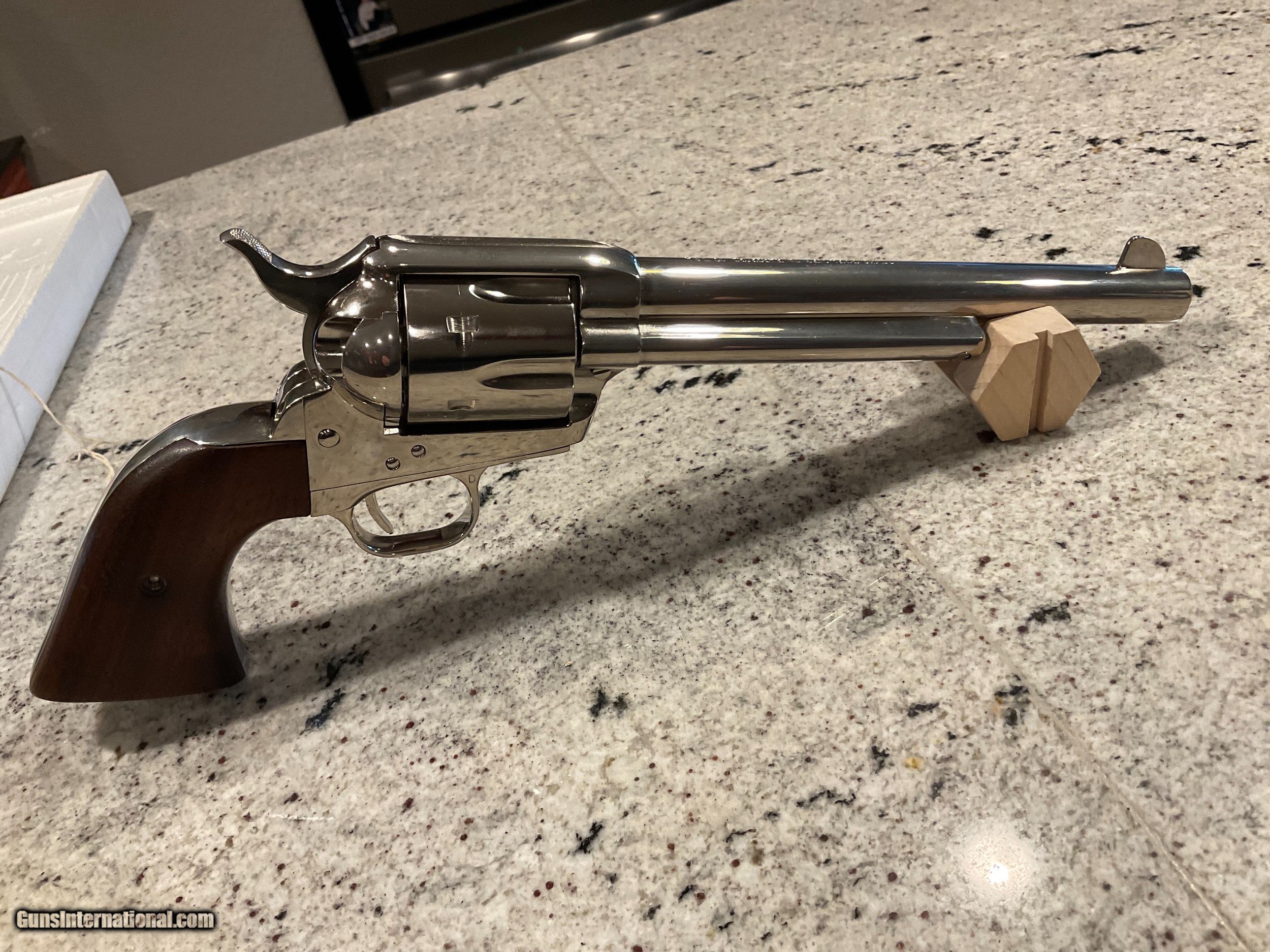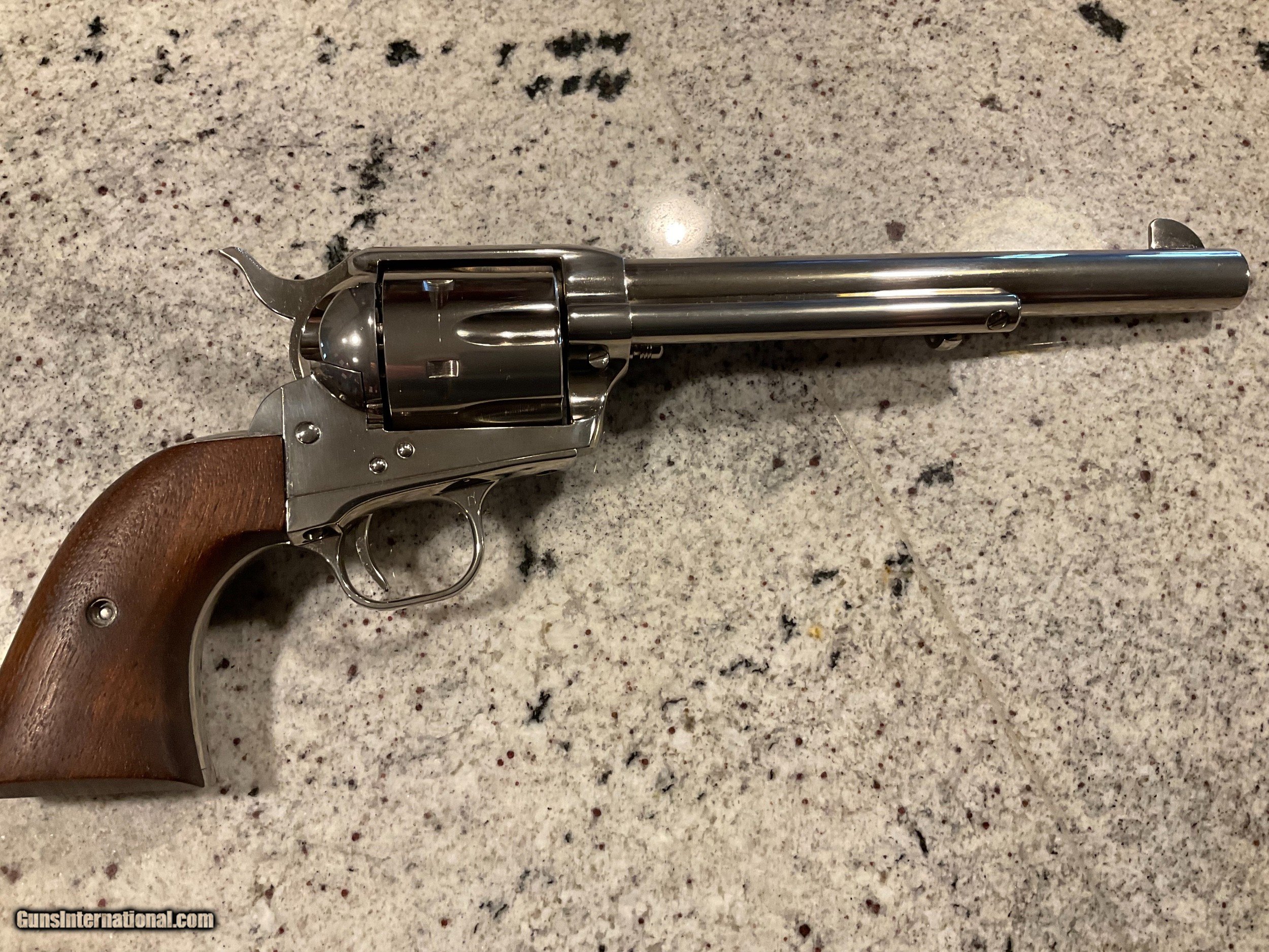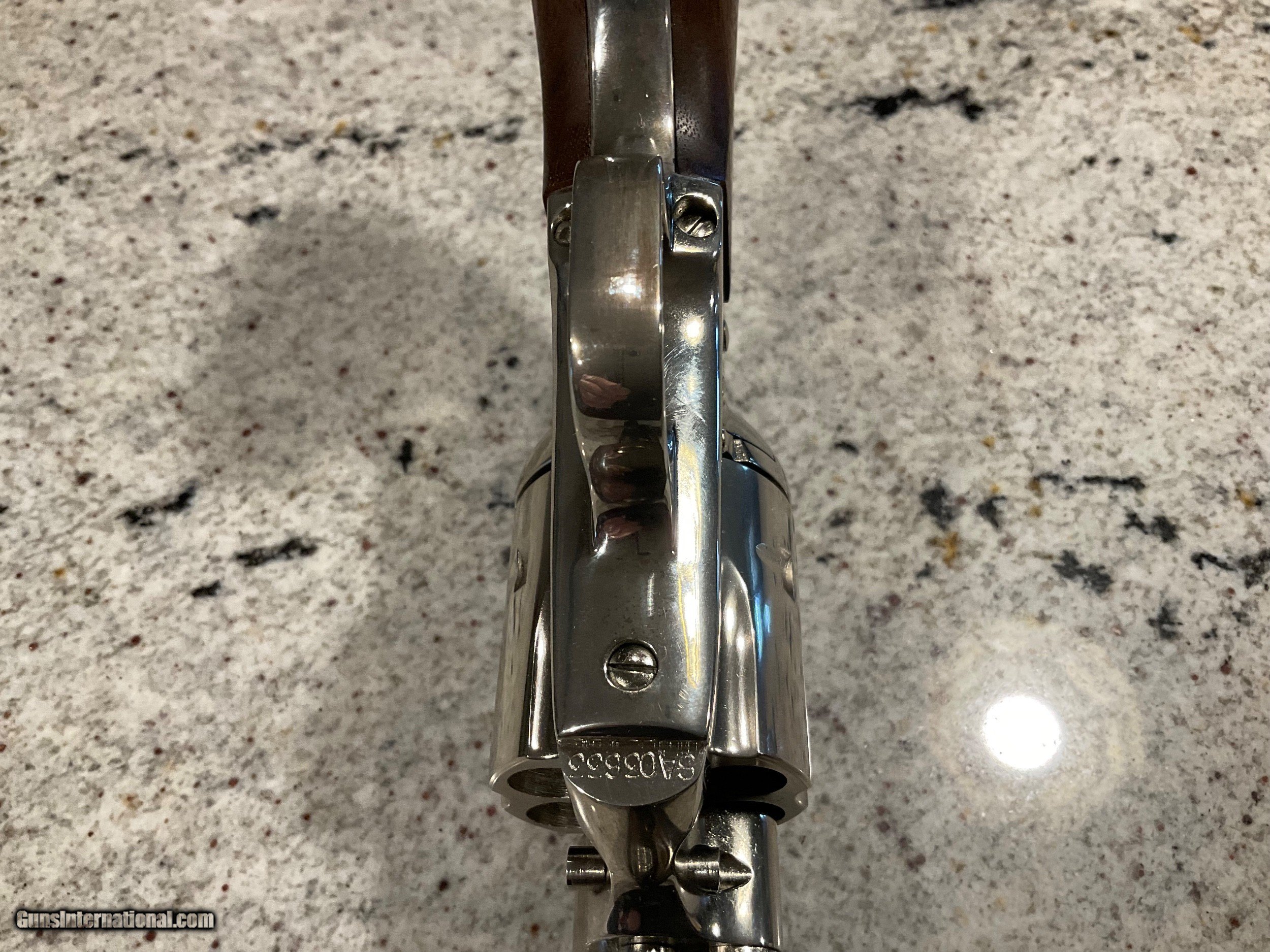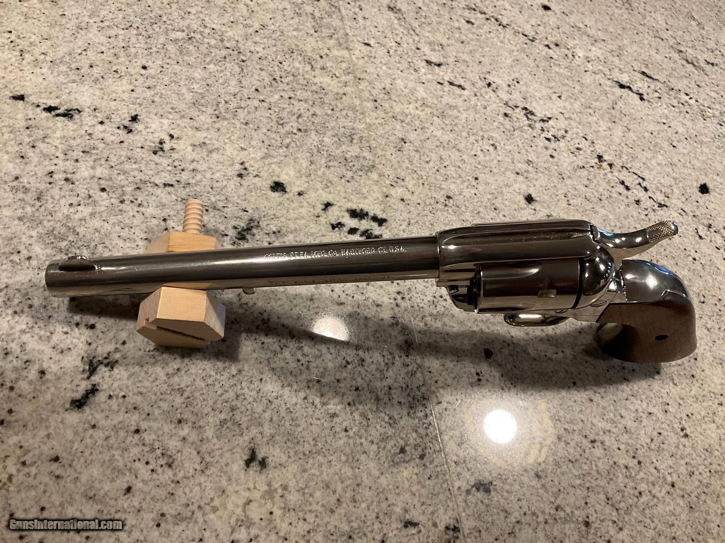 Description: Colt Single Action Army Model # P1876 Serial #SAO 0363* 7 1/2" Barrel Nickel Finish Original box with all accompanying papers. Great metal and grips. Don't see any issues with either. To my knowledge never shot! Can,t say much more. It is a beautiful revolver at a very reasonable price. shipping $30 SOLD Antique: Yes |