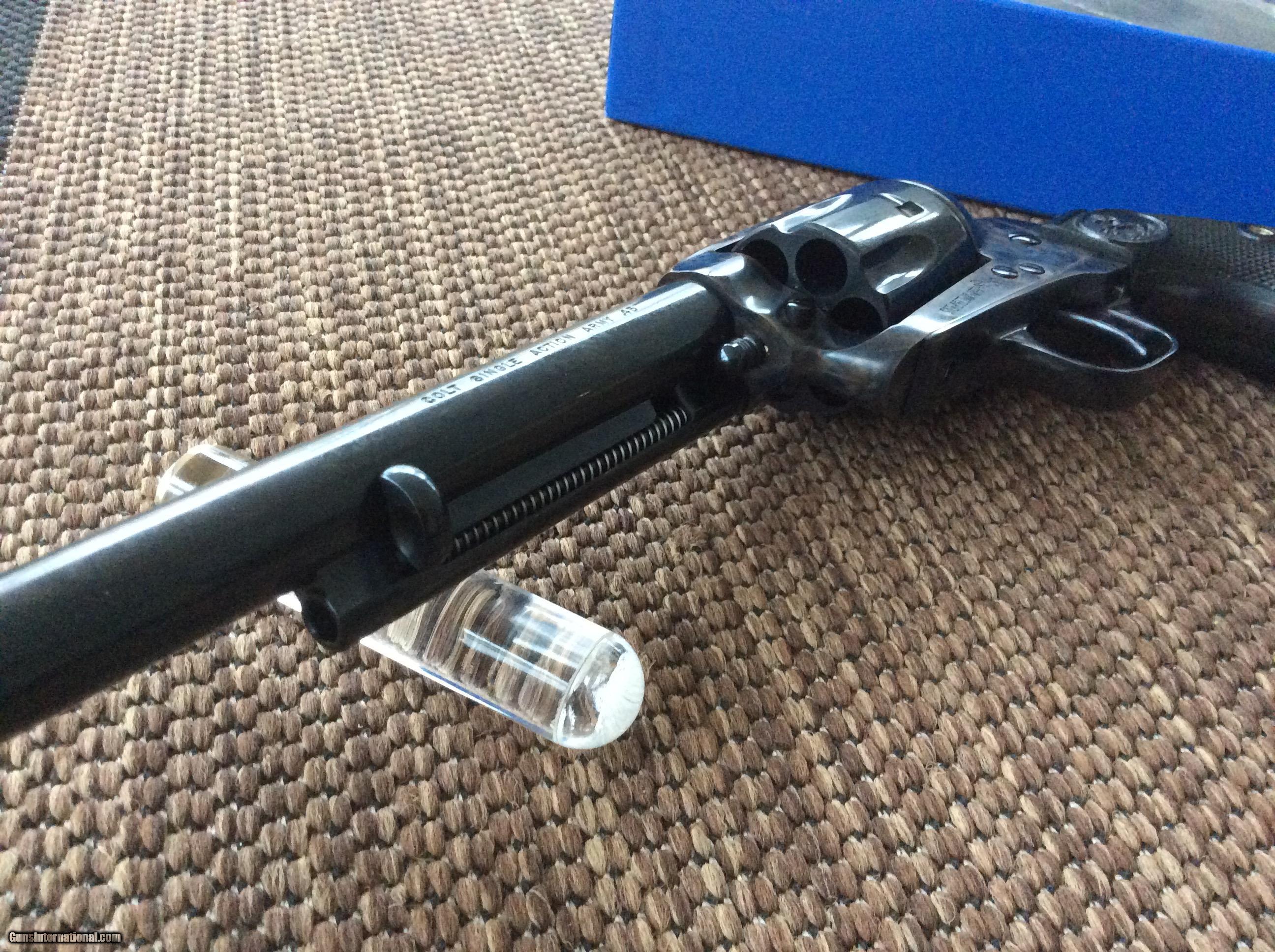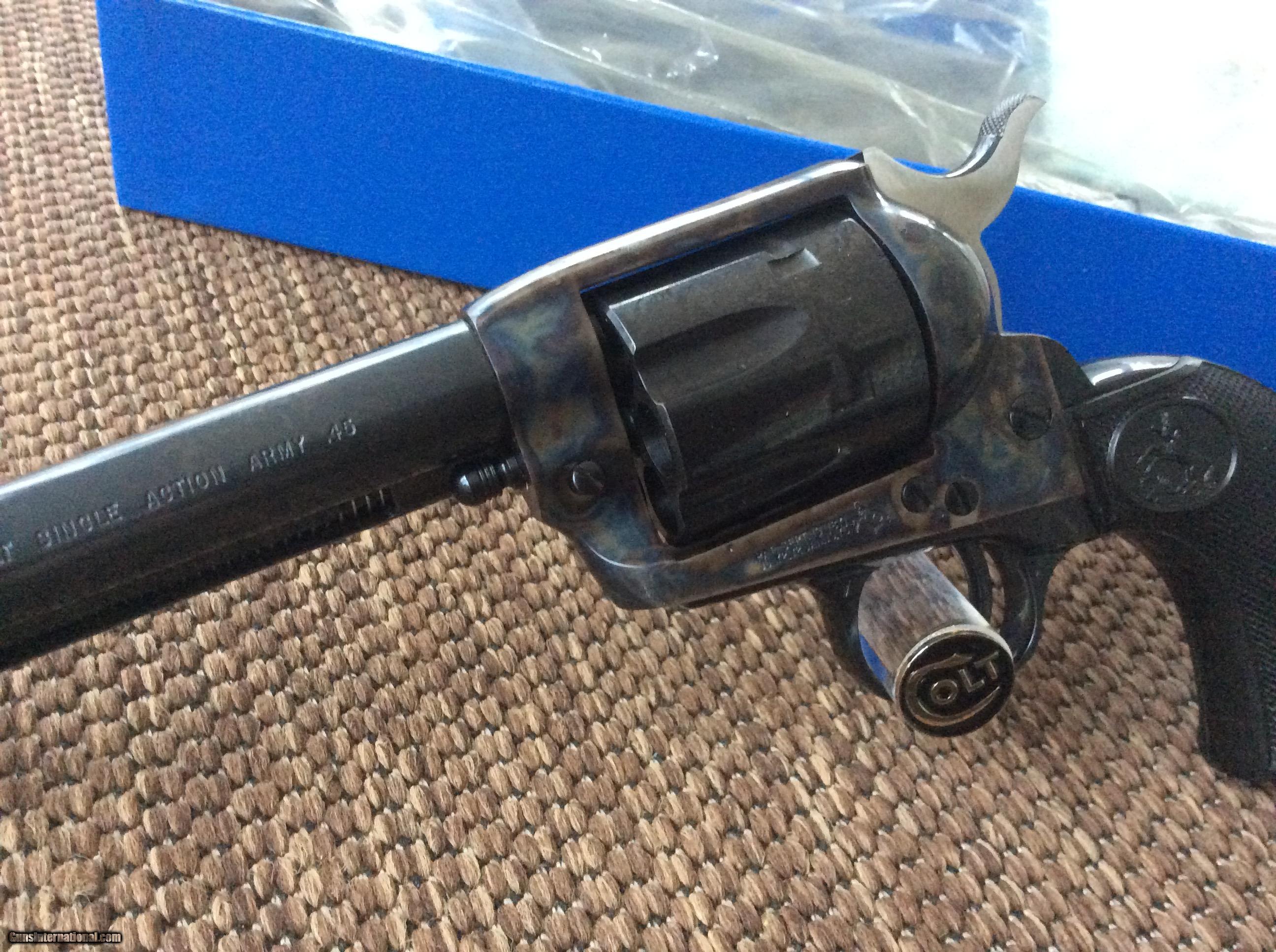Description: Colt SAA 3rd Generation case hardened 7-1/2 .45LC new in box. This one is in the original Serialized custom shop box with everything as she left the factory. Not much else to say about this one she is new, she is perfect 100%. Still in the original wrapping packed in factory grease. No disappointments. FFL to FFL transfers. Any kind of check will work. Please check our other fine Colt listings. Shipping included in price. SOLD Manufacturer: Colt Model: Single Action Army Caliber Info: .45 LC Condition: NIB Metal Condition: NIB Wood Condition: NIB Bore Condition: NIB |