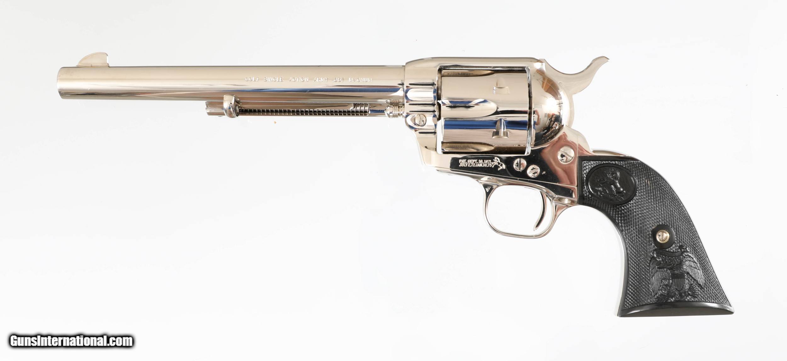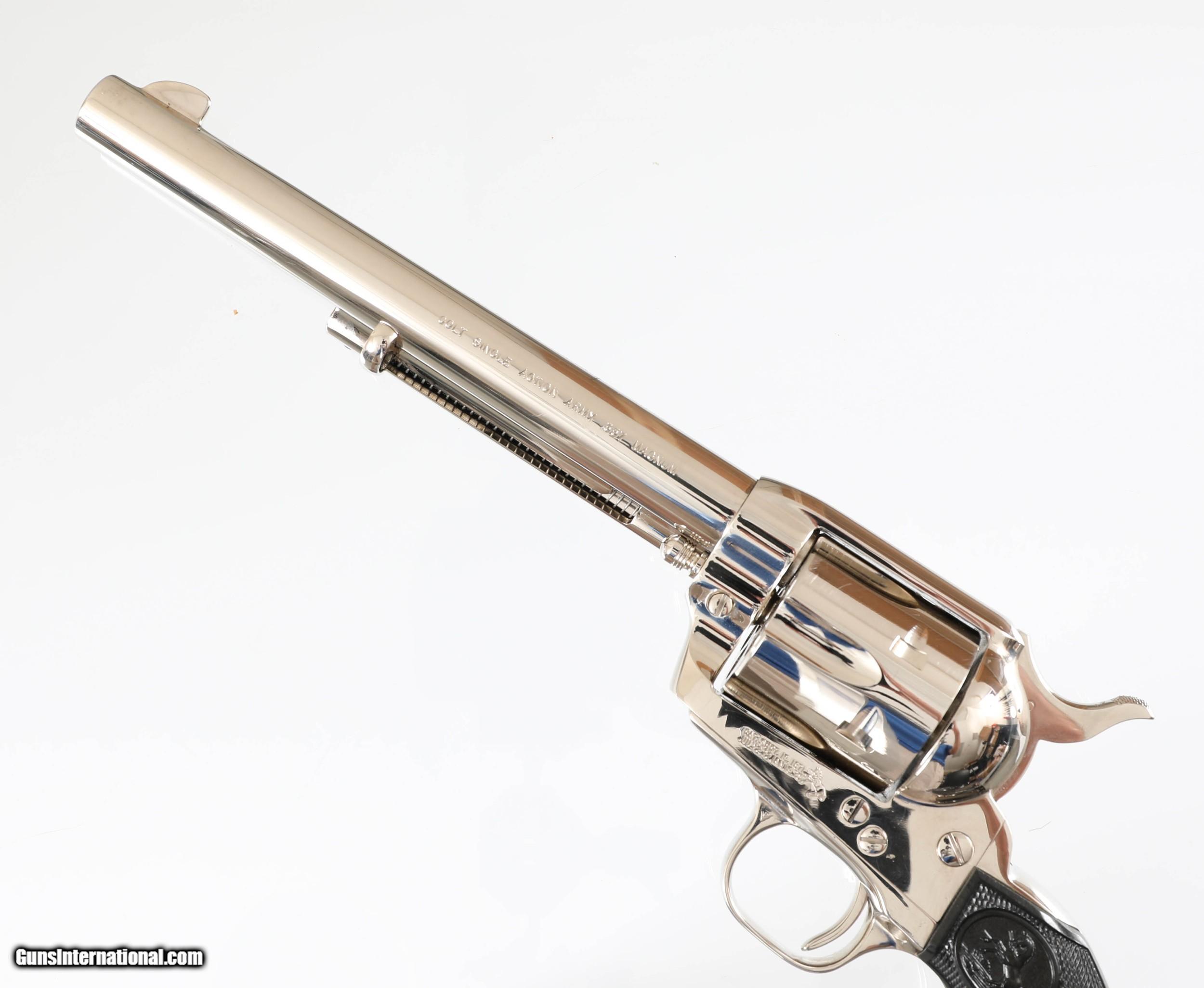SOLD Handgun Caliber: .357 Magnum Manufacturer: COLT Model: SINGLE ACTION ARMY Serial Number: S3644?? Barrel Length: 7 1/2 Condition: EXCELLENT |