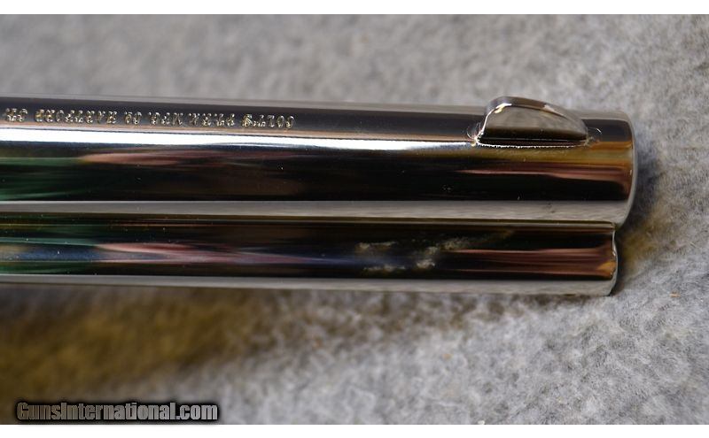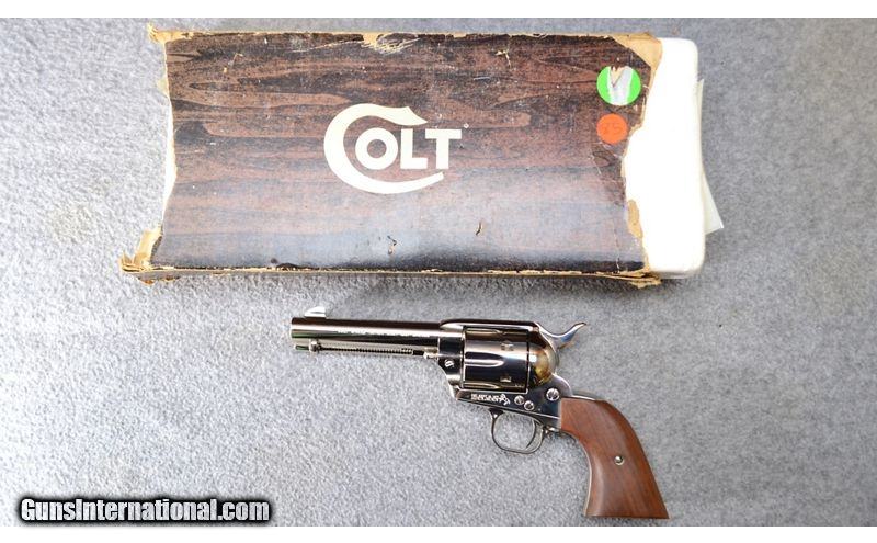 Description: This gorgeous 3rd generation Colt Single Action Army is a hallmark of American history. This pistol that won the west is nickel plated and has barely been used with a very minor drag line on the cylinder, some of the finish wearing around the handles, and some discoloration on the ejection rod housing. Based on the serial, the copyright date on the instructions, and the fact that it is wood handled, that firearm was most likely produced in the late 80s. Perfect for the Colt collector, American West historians, or cowboy action shooters! .357 Mag SOLD Metal Condition: Excellent w/ Very Minor Scratches and Drag Marks Wood Condition: Excellent Bore Condition: Excellent Barrels: 4 3/4 Weight: 2 lbs Sights: Iron Sights Item Location: Hammond, IN |