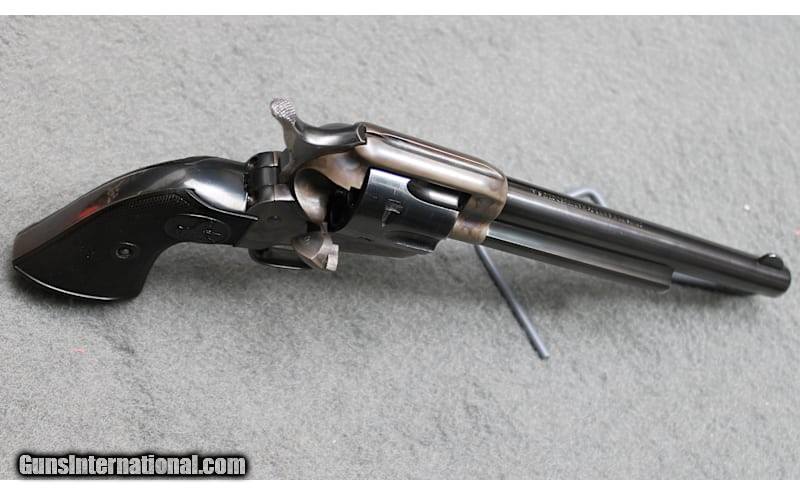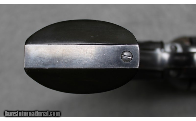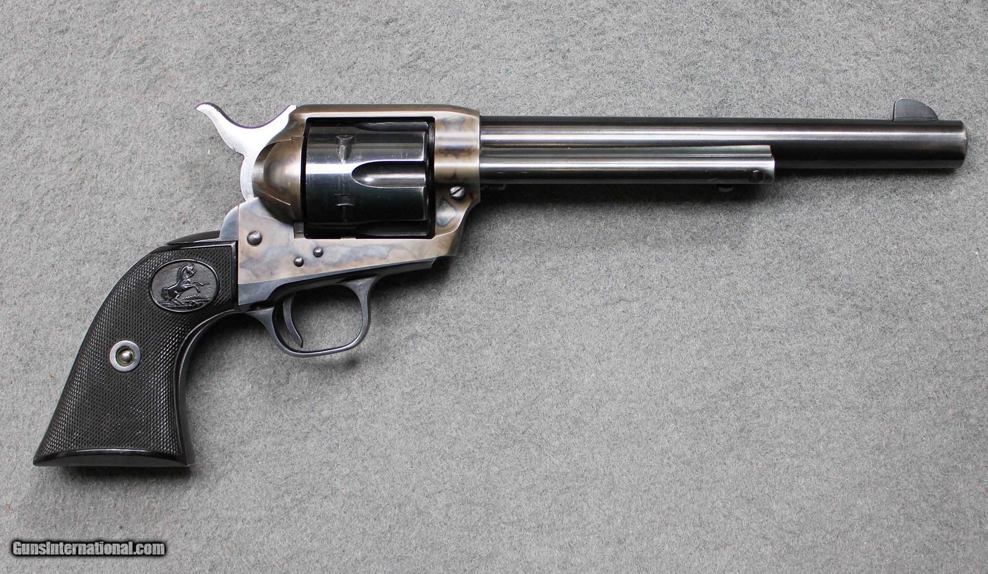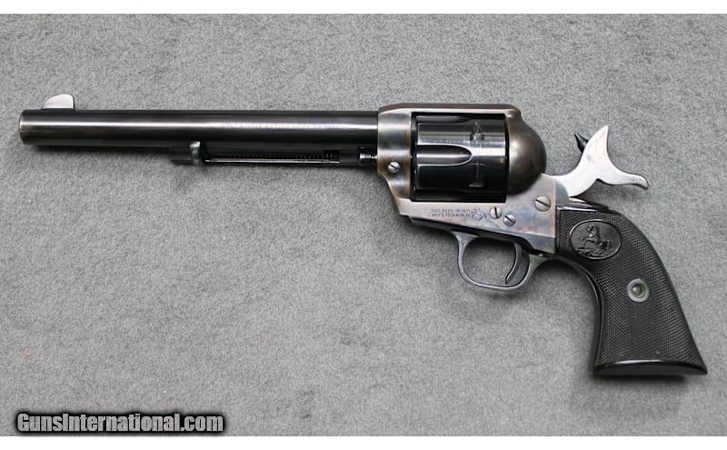This Colt Single Action Army (3rd Gen) is chambered in .38 Special. Item features a 7.5" barrel and hard rubber grips. Color case hardened finish in excellent shape. Manufacture date 1956, Serial number 7233SA. Pistol only; No box, No accessories, No letter. .38 Special