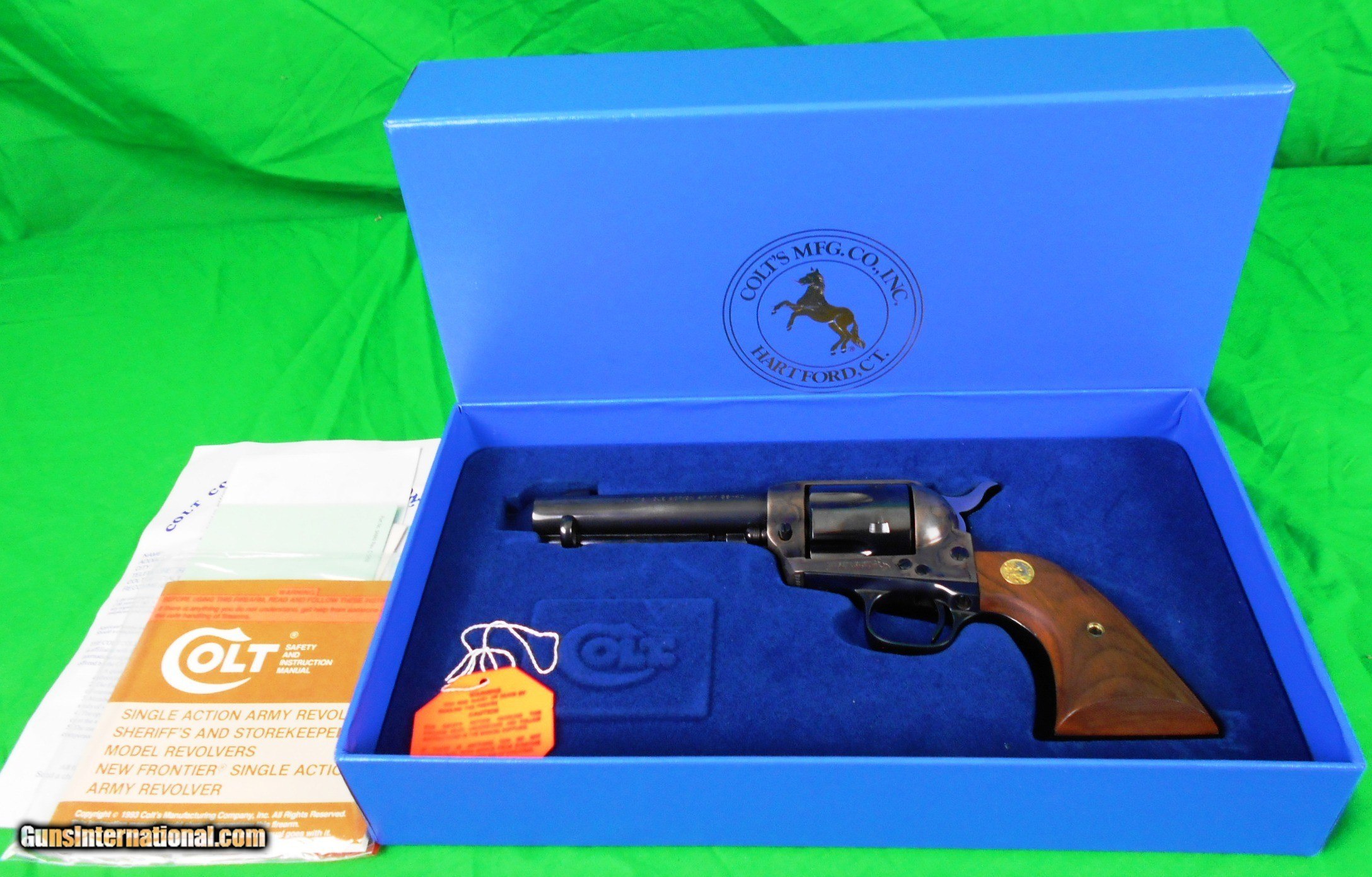 Description: Colt Single Action Army, Blued in 38-40 with wood grips with 4 3/4" barrel made in 1993. With blue box, white sleeve and factory paperwork. Revolver is lightly used. Revolver is in beautiful shape and is a prime example of one of Colt's best revolvers ever made. 500 pieces of brass included - 400 new Starline- 100 once fired Winchester. Please feel free to ask questions or for additional pictures. The firearm is for sale locally. Shipping and insurance will be determined for the buyer. - price reflects a cash discount - add 3% for Mastercard/Visa/Discover - payment arrangements must be made within 3 days of the end of sale. SOLD Manufacturer: Colt Model: SAA Caliber Info: 38-40 |