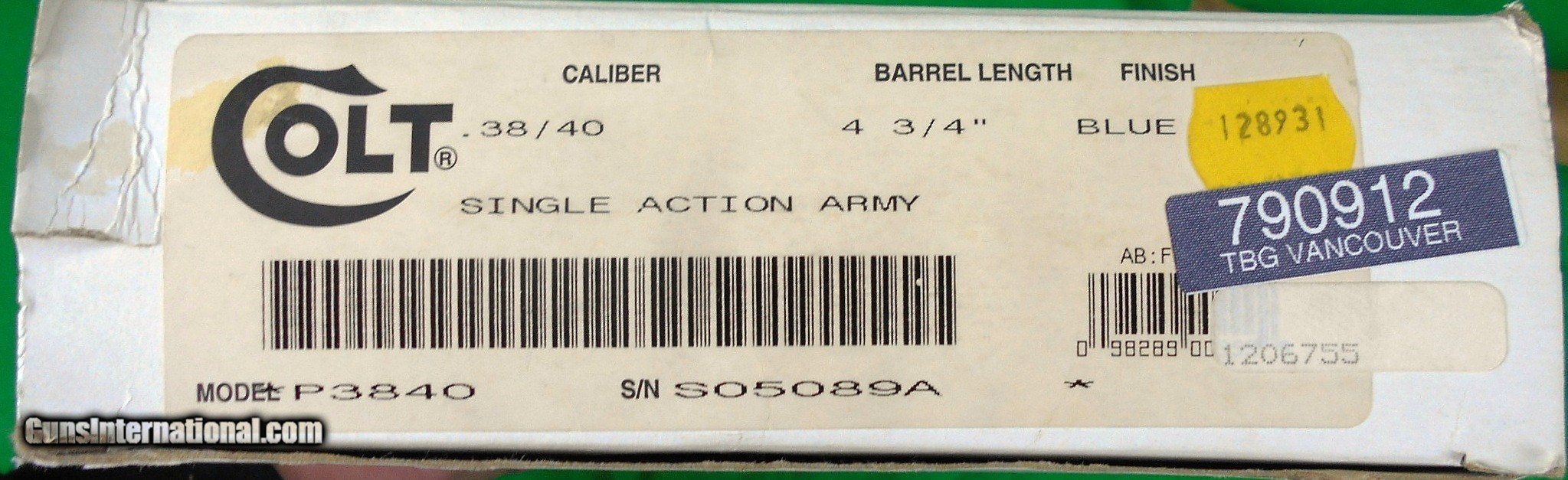 Colt Single Action Army 3rd Gen in 38-40 w/Brass