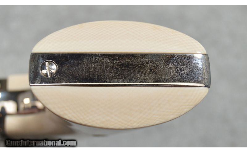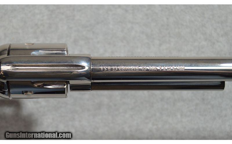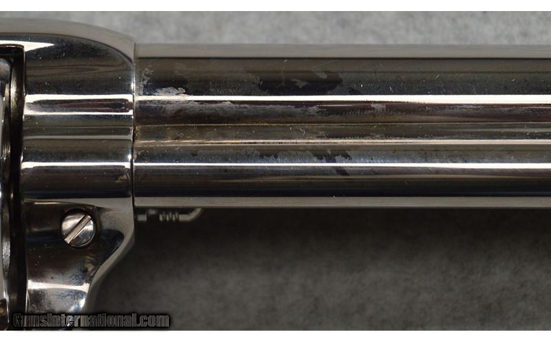 Description: Colt Single Action Army 3rd Generation Buntline Special chambered in 44-40 W.C.F. is in excellent condition. It was manufactured in 1988 and comes with a brown box with a matching label. It features a nickel finish, 12" barrel, and has smooth white grips. .44-40 Winchester SOLD Metal Condition: Excellent Bore Condition: Clean and shiny Barrels: 12 Butt Pad: Smooth light grips Weight: 2 LB 14 OZ Sights: Fixed front blade sight and frame notch rear sight. Item Location: Fort Worth, TX |