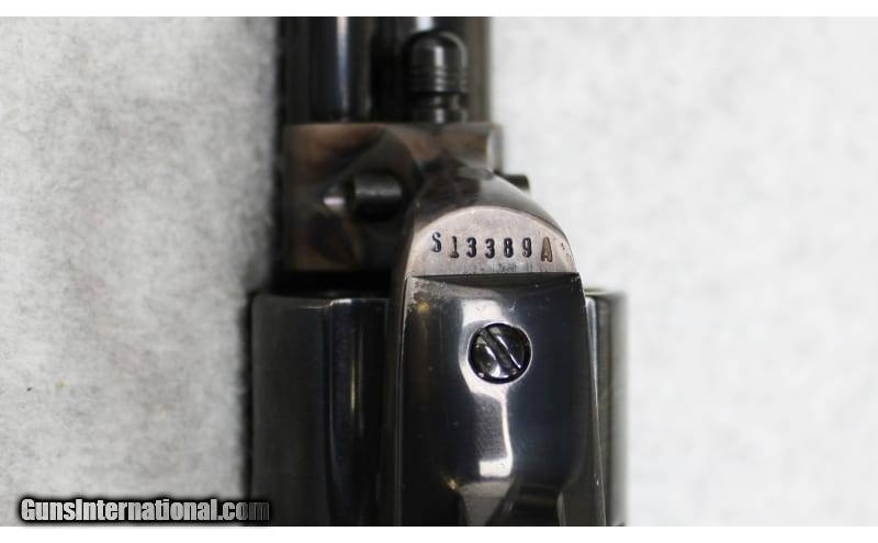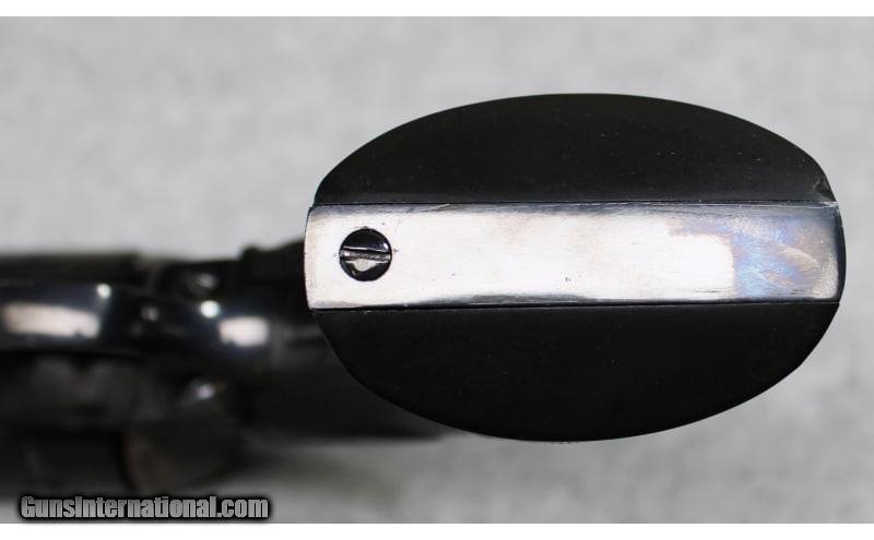 Description: This Colt revolver is chambered in .44-40 Winchester. It features hard plastic grips and a color case hardened finish. Gun is in very good shape with only minimal wear. Slight drag line on the cylinder. Date of manufacture on this piece is 1996. Serial Number is S13389A. .44-40 Winchester SOLD Metal Condition: Very Good with Minor Handling Marks Wood Condition: N/A Bore Condition: Bright and Clear with Good Rifling Barrels: 4.75 inch Butt Pad: Hard plastic Weight: 2 lb 6 oz Sights: Front bladed sight Item Location: Fort Worth, TX |