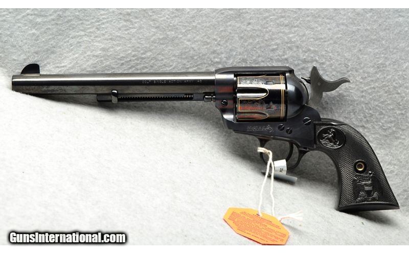 Description: Like-new Colt SAA. Reportedly unfired! .45 Colt SOLD Chambers: 6 rounds Metal Condition: Excellent Wood Condition: Grips excellent Bore Condition: Excellent Barrels: 7 1/2-inch barrel Triggers: Single action Weight: 2 lb 7 lb Sights: Fixed Item Location: Cheektowaga, NY |