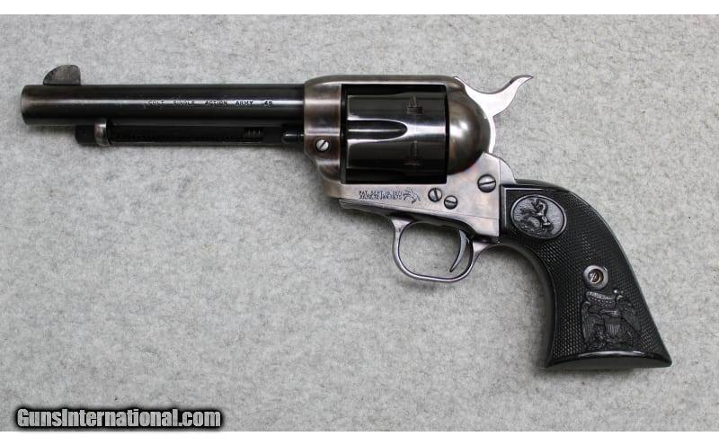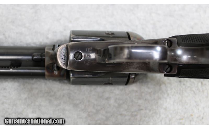 Description: Colt Single Action Army revolver chambered in .45 Colt. The serial number (96755SA) dates the firearm to 1978. Initials "CGR" stamped on trigger guard. .45 Colt SOLD Metal Condition: Very Good with Minor Handling Marks Wood Condition: Very Good with Minor Handling Marks Bore Condition: Bright And Clear with No Pitting Barrels: 5.5 inch Butt Pad: Hard Rubber Weight: 2 lbs 4 oz Item Location: Fort Worth, TX |