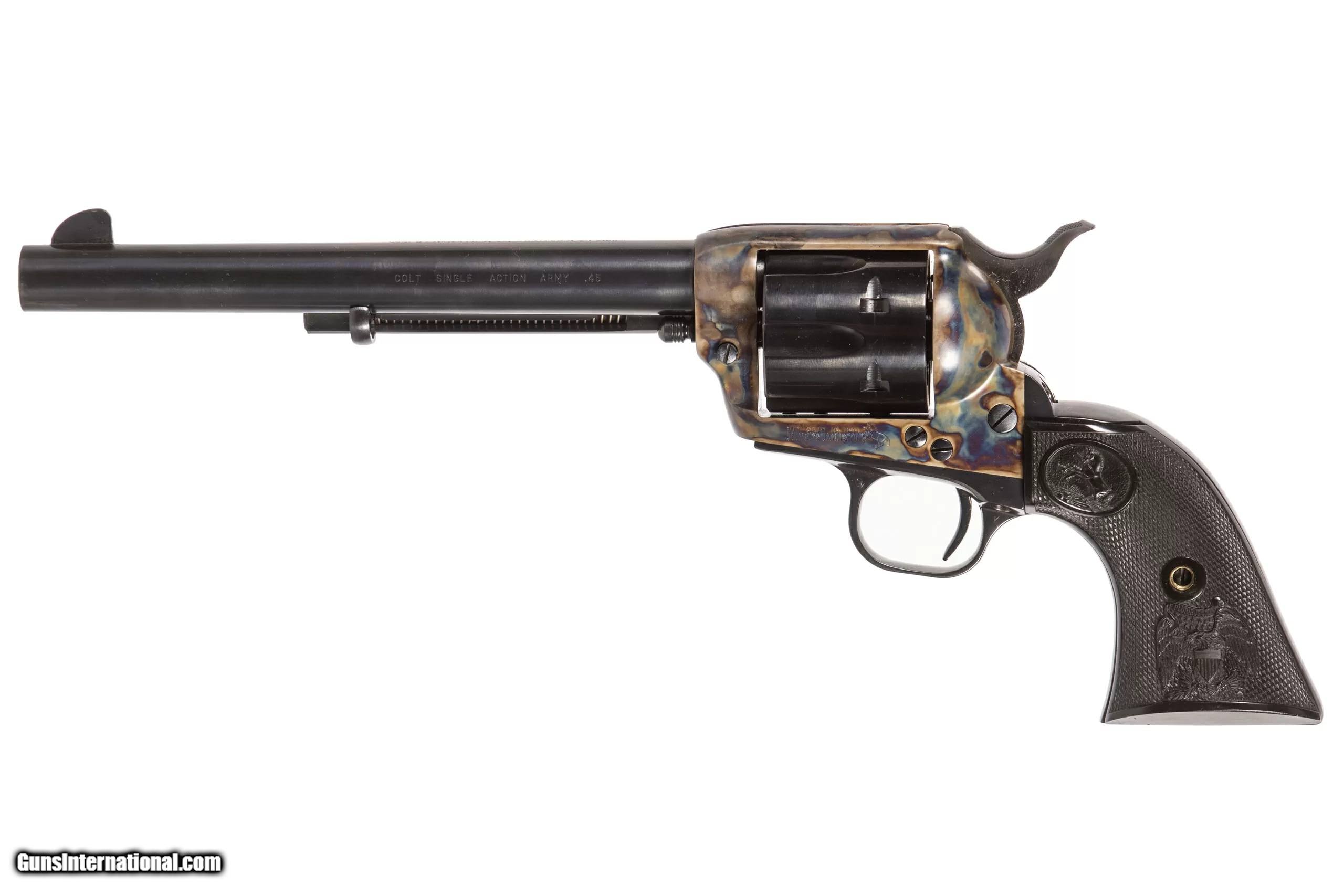 Description: Colt Single Action Army chambered in 45 Long Colt with a 7½ inch barrel, pristine bore with pristine rifling and no cylinder mark as this revolver is unfired. This revolver comes with the original box. The NRA grading condition for this USED firearm is Excellent. Dury's Lifetime Warranty: All firearms purchased from Dury’s Gun Shop, NEW or USED, are covered by a lifetime warranty. We will repair or replace, at our discretion, any firearm purchased from Dury’s Gun Shop, Inc. for as long as it is owned by the purchaser. This warranty is not transferable. WE BUY GUNS! NO COLLECTION TOO BIG OR SMALL FOR OUR GUNS INTERNATIONAL CUSTOMERS ALL OF OUR FIREARMS CAN BE PURCHASED DIRECTLY FROM OUR DURY'S GUNS SITE ! SOLD Manufacturer: Colt Model: Single Action Army Caliber Info: 45 LC Barrels: 7inches |