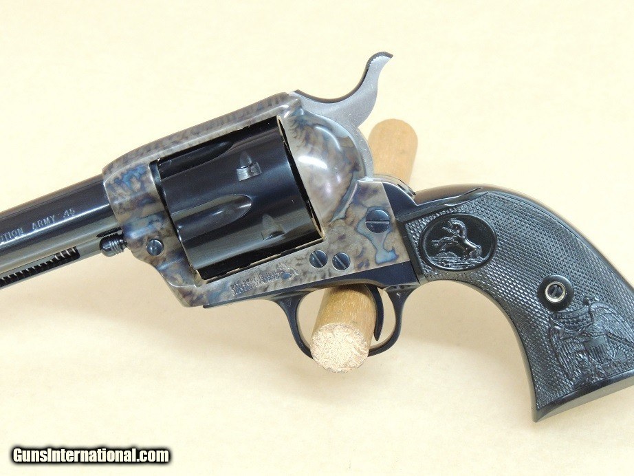 Description: Colt Single Action Army .45lc Revolver in the Box, 7 1/2" Barrel with mint bore, Blue/Case Color, Eagle Stocks, No Turn Line, Third Generation circa 2013' production, $2995 *Please make sure to include our inventory number and or Item description in any and all text messages * No Sales to California *Please Use Our Inventory Number for Inquiries*Helpful Information: If this item has the Box, Papers or various extra items they will be pictured and described, This item listing is in stock and available for purchase unless the Sale Pending Tag is present. *Payment Options Payment Options *Postal Money Order* Cashiers Checks *Personal Checks (Item held until Check Cleared* Layaway 120 days*No Interest*Pay any way, any time you like over the term *Deposit required *Credit Cards Visa or Master Card 3.5% fee added to total sale* GA residents 7% sales Tax Applies *Best Phone Number for Calls or Text 229-424-8450* Shipping & Insurance $55.00 SOLD |