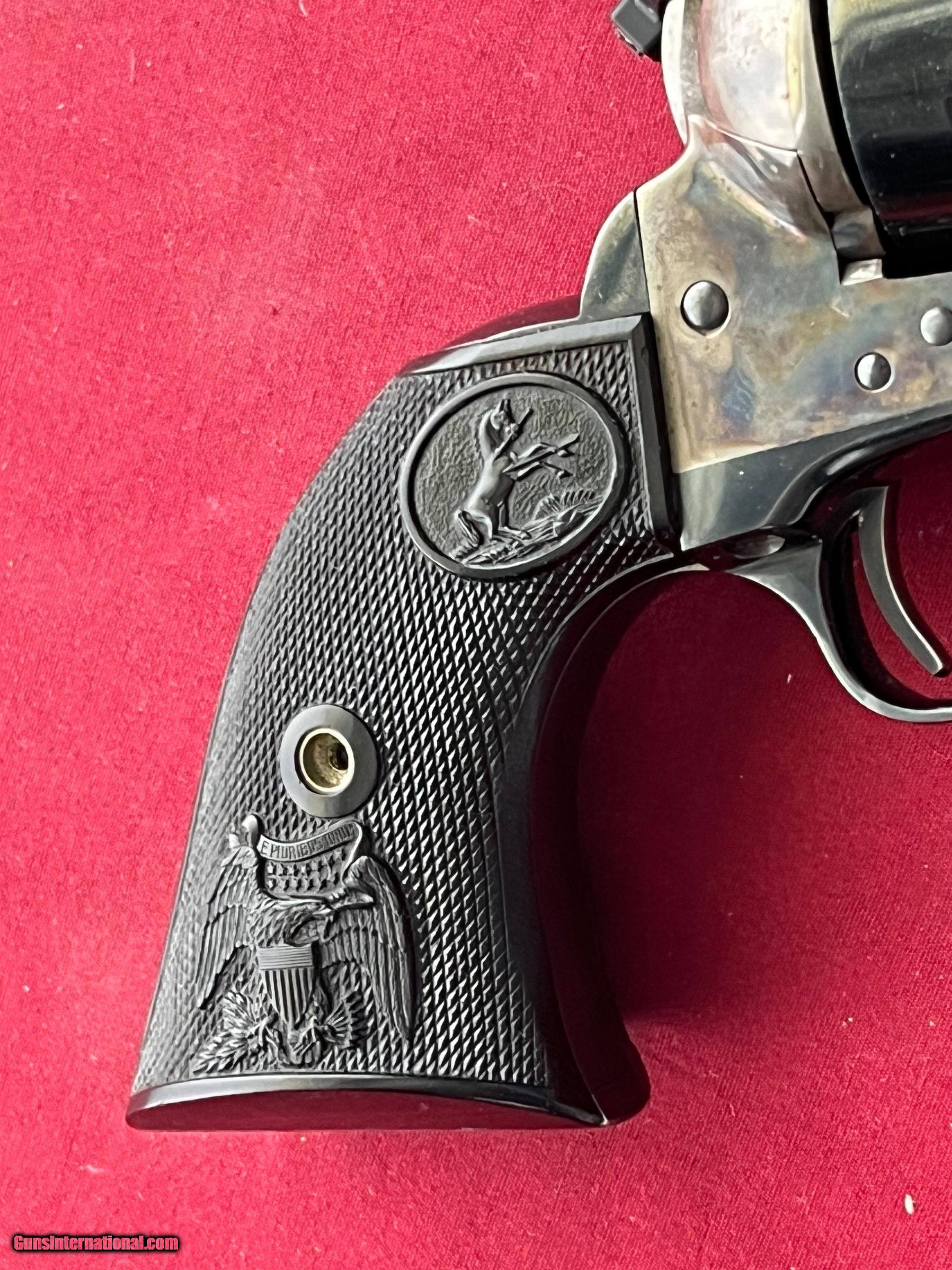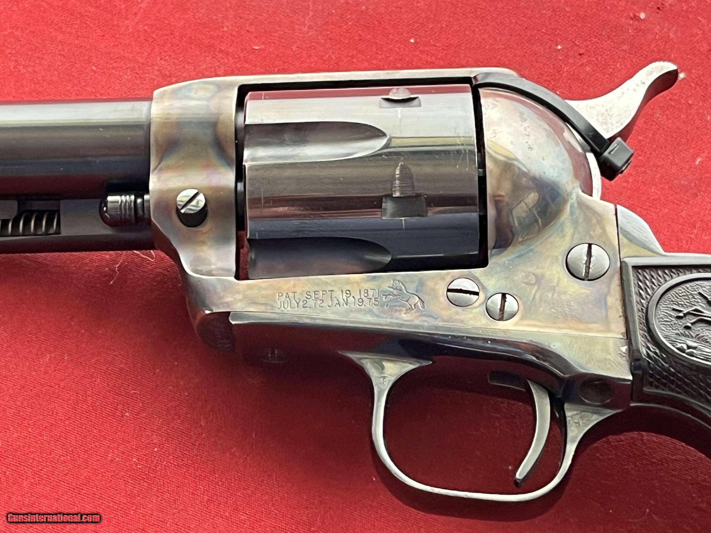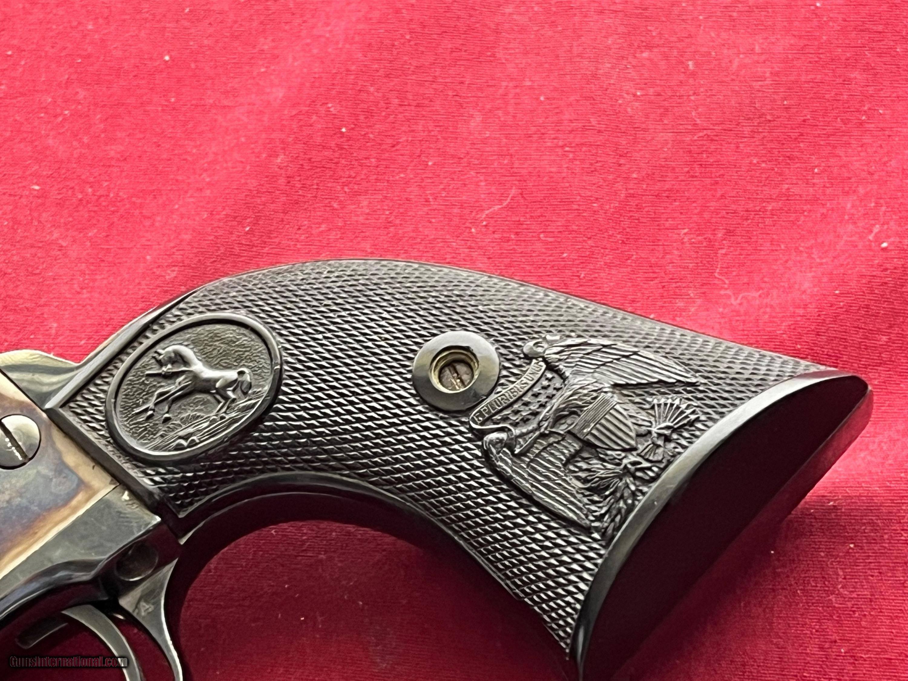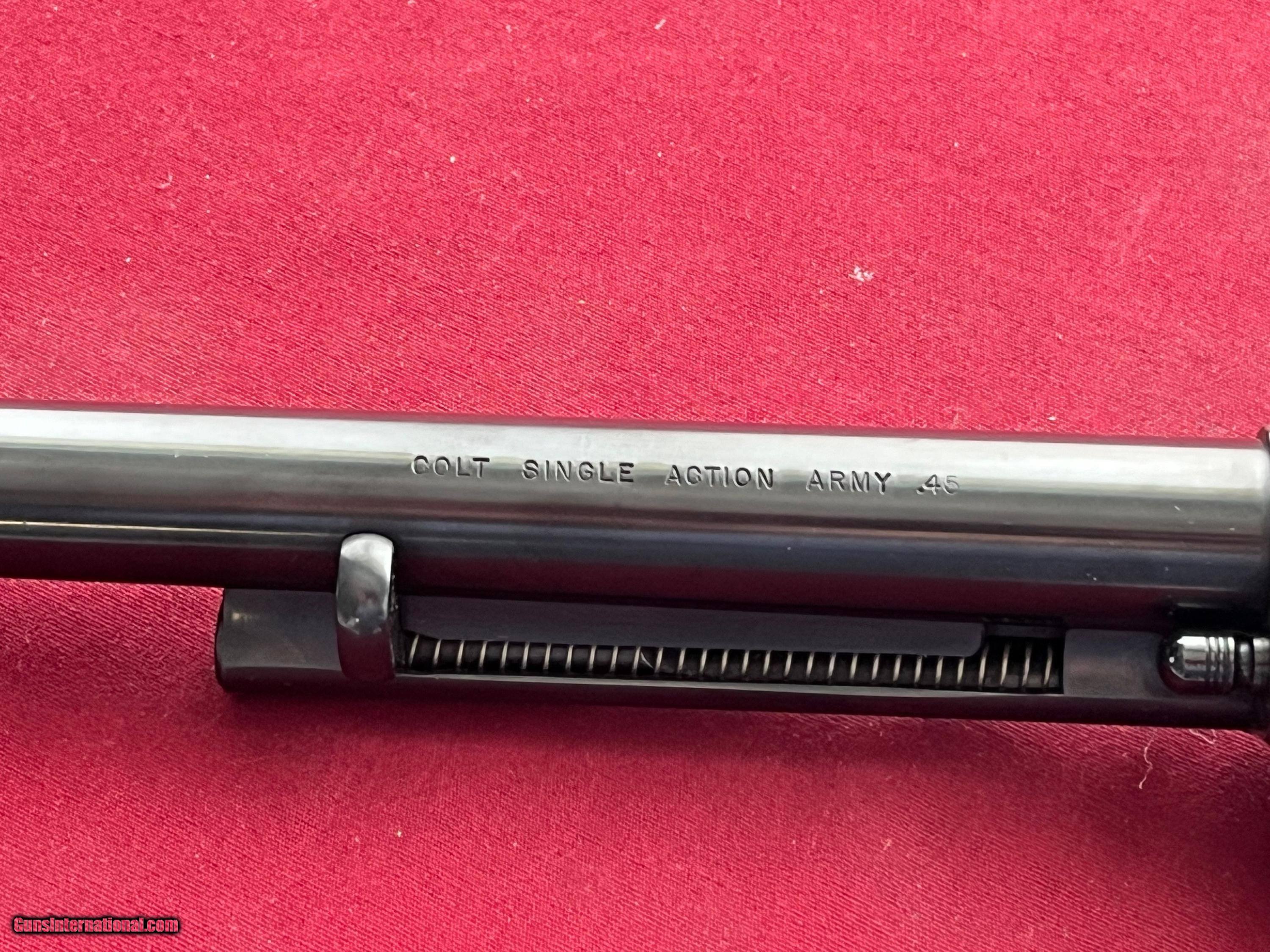 Description: COLT SINGLE ACTION ARMY 3ND GENERATION REVOLVER . SER# 80280SA MADE IN 1976, CALIBER 45 COLT . 71/2 INCH BARREL WITH AN EXCELLENT BRIGHT BORE. CASE COLORED FRAME. GUN MAY OF BEEN FIRED . IF SO IT WAS VERY VERY LITTLE. CYLINDER HAS A LIGHT TURN LINE. VERY NICE SOLID GRIPS. EASTERN BRANCH FIREARMS ADD 40.00 SHIPPING – NEXT DAY AIR SHIPPING ADD 50.00 SHIPPING – LONG GUNS GROUND OPTIONAL INSURANCE IS AVAILABLE AT 1.25 PER 100.00 Questions e-mail or call Glen at Eastern Branch Firearms 207-215-5021 TERMS – PLEASE READ BEFORE I DO NOT HAVE A LAYAWAY OPTION ( WE ACCEPT CREDIT CARDS ) -- I GET ALOT OF REQUEST FOR TRADES, I WOULD PERFER NOT TO DO TRADES ON MY INTERNET LISTINGS PAYMENT OPTIONS- We accept money orders, cashier’s checks , bank checks. sorry no personal checks. We accept all major credit cards please add 3% to the ’s cash discount price.(Shipping within the state of Florida - Florida Residents must pay sales tax) .Handguns and long guns do need to be shipped separate. PLEASE do not send payment via FED EX . USPS & UPS are fine. Thank you. We include a signed copy of our FFL with each firearm shipped. SAFTY NOTICE- Buyer is solely responsible for determining that a used gun is safe to shoot. The firearms offered have not been test fired but have been given a visual inspection only for purposes. It is a requirement that every used firearm is inspected by a qualified gunsmith before firing. By , the buyer agrees to hold seller harmless against damages, injury, or death caused by defective merchandise. RETURN POLICY- All firearms come with a 3-day non firing , non messing with ( turning srews ,taking apart,removing parts, scoping. firing, cleaning or messing with in anyway) inspection/return privilege.Inspection is based on a visual review of the gun to confirm the gun is in the condition stated. In the case of a return, buyer pays all shipping charges & if paid for with a credit card buyer absorbs the 3% credit card charges . So please ask questions BEFORE you bid. Thanks for Looking and Good Luck!! U.S. sales only, no exports…this includes antiques. I will ship to third party for exporting SOLD |