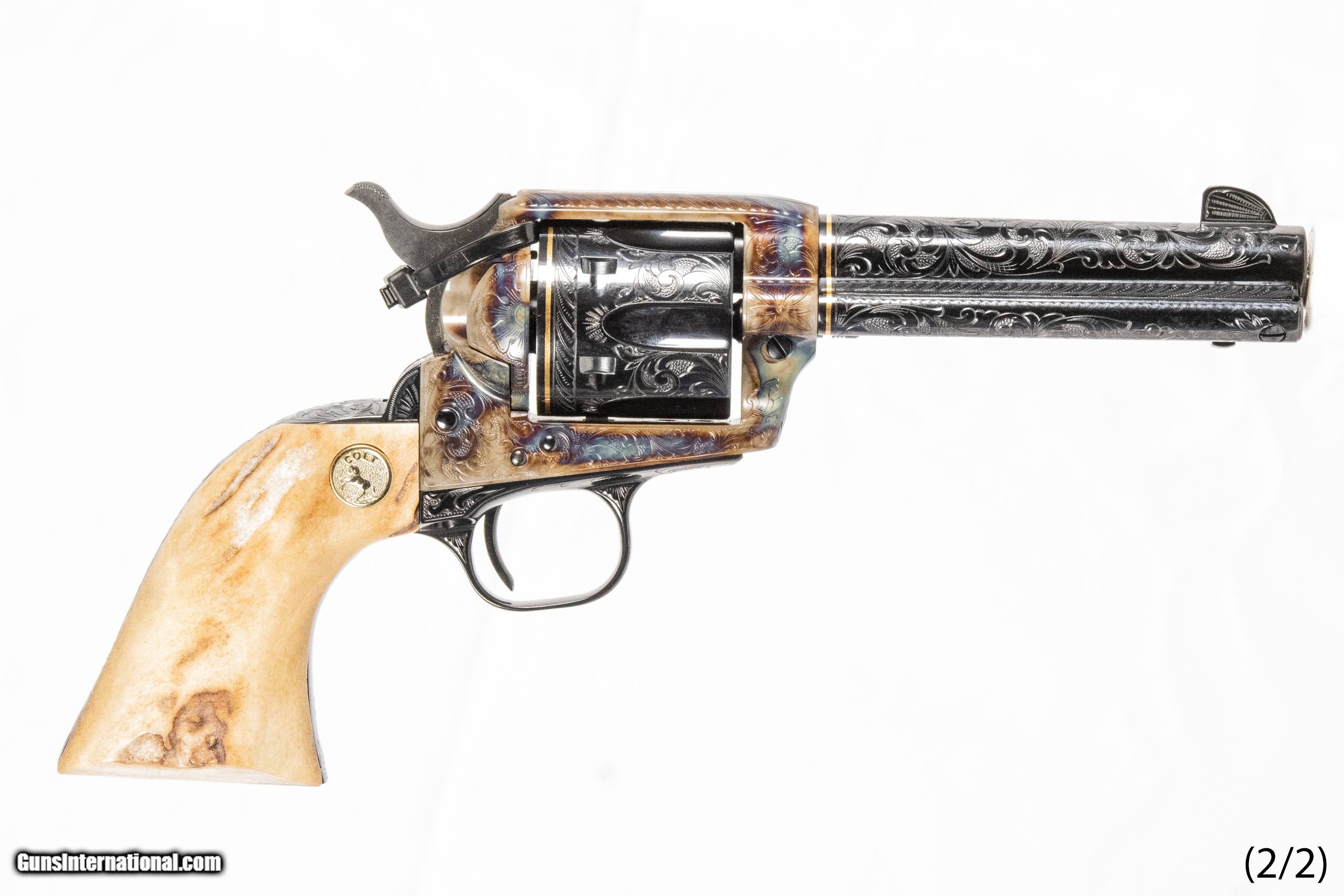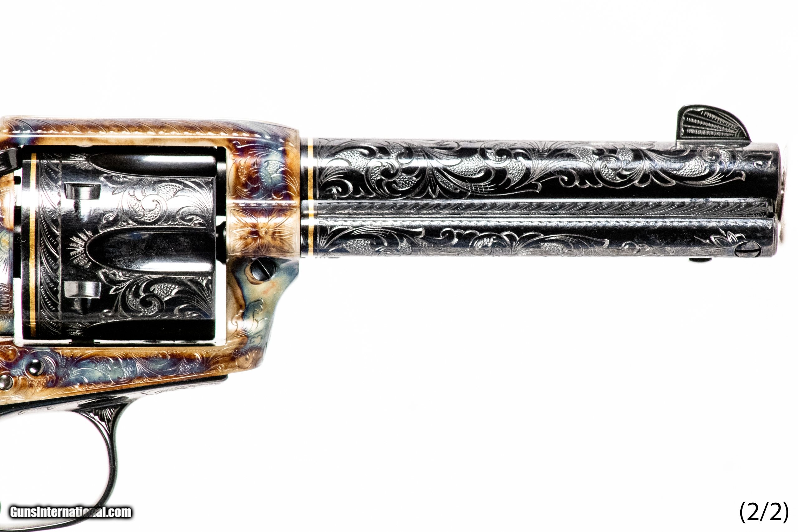 Description: Two Colt Single Action Army Generation 3 chambered in 45 Long Colt. 4.75 inch barrel. Blued finish, color case hardened. Heat treated fire blued screws. De-standard engraving. This covers 75% of the firearm with gold inlay accents. Stag grips. These revolvers are both UNFIRED. Last of the special orders from Colt's Custom Shop. CONSECUTIVE serial numbers. This set comes with original boxes, extra cylinders chambered in .45ACP, and extra grips. The NRA grading condition for this USED firearm is Excellent. Dury's Lifetime Warranty: All firearms purchased from Dury’s Gun Shop, NEW or USED, are covered by a lifetime warranty. We will repair or replace, at our discretion, any firearm purchased from Dury’s Gun Shop, Inc. for as long as it is owned by the purchaser. This warranty is not transferable. WE BUY GUNS! NO COLLECTION TOO BIG OR SMALL FOR OUR GUNS INTERNATIONAL CUSTOMERS ALL OF OUR FIREARMS CAN BE PURCHASED DIRECTLY FROM OUR DURY'S GUNS ! SOLD Manufacturer: Colt Model: SINGLE ACTION ARMY SET Caliber Info: 45 LC Barrels: 4inches |