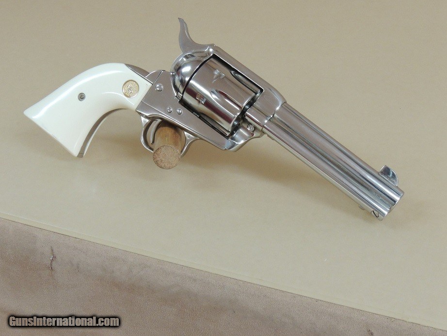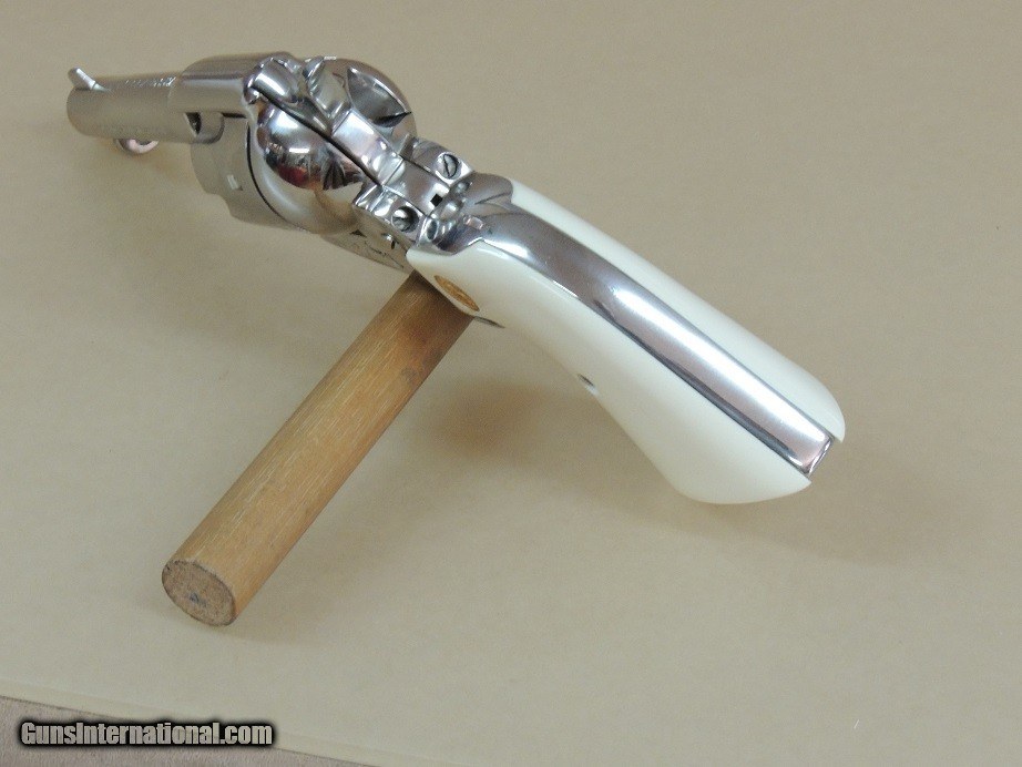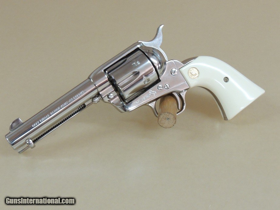 Description: Colt Single Action Army Nickel .44 Special Revolver in the Box, 4 3/4" Barrel, Full Nickel, Ajax Faux Ivory Stocks, 99% in the Box, Third Generation Circa 1982' Production $2500 *********Please No Random Text Messages**All text must include your Name, Our inventory number and Item description ** (No Sales to California) (PLEASE REFERENCE OUR INVENTORY NUMBER) (PAYMENT OPTIONS) (Postal Money Order) (Cashiers Checks) (Personal Checks (Item held until Check Cleared) ***(Layaway 120 days-(No Interest)-(Pay any way, any time you like over the term) -(Deposit required)*** (Credit Cards Visa or Master Card 3.5% fee added to total sale) (GA residents 7% sales Tax Applies) (BEST PHONE/TEXT 229-424-8450) (SHIPPING $35.00) SOLD |