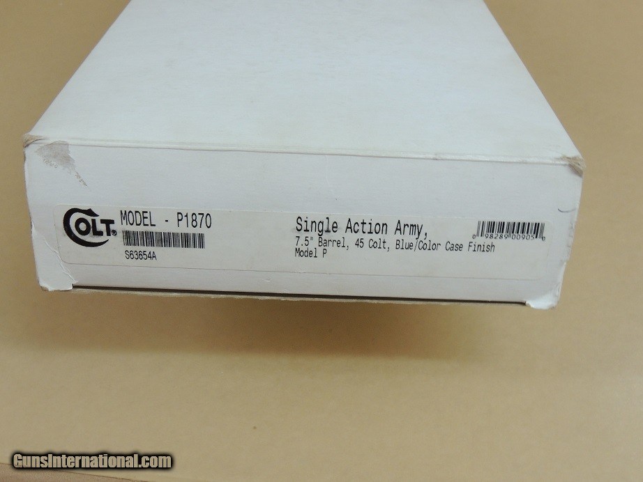 Description: Colt Single Action Army Revolver 45lc in the Box, 7 1/2" Barrel, Blue/ Case Color, Eagle Stocks, unturned, Third Generation production c.2009 $3150 Helpful Information: *Please make sure to include our inventory number and or Item description in text messages * If this item has the Box, Papers or various extra items they will be pictured and described, This item listing is in stock and available for purchase unless the Sale Pending Tag is present.* No sales to California *Payment Options *Postal Money Order* Cashiers Checks *Personal Checks (Item held until Check Cleared* Layaway 120 days*No Interest*Pay any way, any time you like over the term *Deposit required *Credit Cards Visa or Master Card 3.5% fee added to total sale* GA residents 7% sales Tax Applies *Best Phone Number for Calls or Text 229-424-8450* Shipping & Insurance $55.00 Our 26th year full time in the business, We started listing with GunsInternational since the beginning 03/20/2007 SOLD |