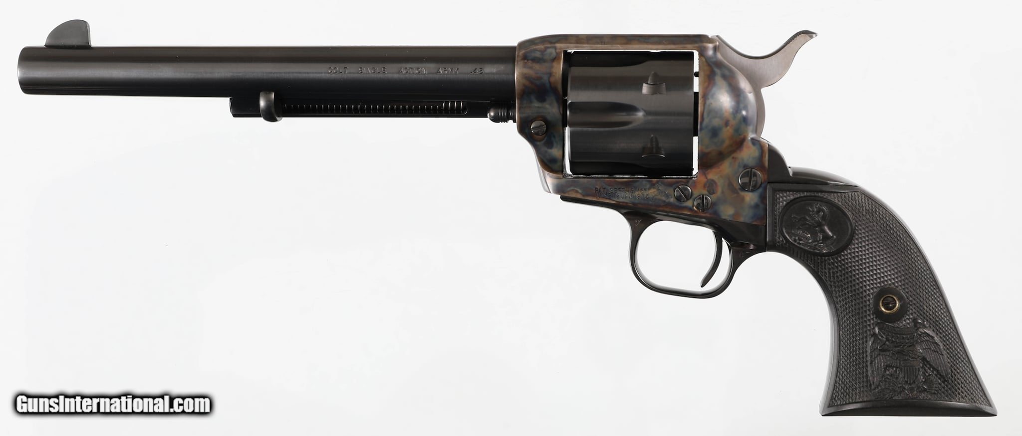 Description: Guns Listing ID: 735207 MAKE - COLT MODEL - SAA - 3RD GEN FINISH - BLUED / CASE-COLORED FRAME BARREL - 7 1/2\" CALIBER - 45 LC CAPACITY - 6 GRIPS - PLASTIC CONDITION - EXCELLENT FEATURES - COMES WITH ORIGINAL BOX & PAPERS SOLD Manufacturer: COLT Model: SINGLE ACTION ARMY SAA 3RD GEN 1983 YEAR MODEL W/ ORIGINAL BOX & PAPERS Caliber Info: .45 LC Condition: Used - Non-Certified Barrels: 7.5 BARREL Finish: CASE HARDENED |