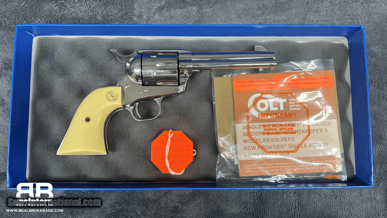 Description: Colt - Single Action Army (SAA) - 45 Colt - 3rd Gen (2007) - Like New Nickel Finish - Factory boxed in excellent visual condition with bright nickel finish, six-shot fluted cylinder, fixed sights, polished faux-ivory grips with Colt gold medallions, factory paperwork/manual and tag included (see photos). This is a modern 3rd-generation SAA with the safety/transfer-bar features, ideal for collectors or cowboy-action shooters who want classic Colt styling with contemporary safety. $35 shipping on handguns and $45 on long guns. 5% Fee on Credit Card transactions. No international shipping on any items. We ship ASAP once payment and FFL are received. Due to current World issues some shipping delays can/will occur on occasion. Most of the time items will ship within 2-4 business days after payment & FFL received. We can be easily contacted with questions or concerns on any posted item or items won (256) 410-2053 Bealagegmail. In no event shall the seller, be liable for any damages of any kind, including without limitation, direct, indirect, compensatory, special, consequential, punitive, and/or incidental damages related to the products sold. Our sales are all listed "AS IS"...if an item is factory new and there are any issues they will be covered by the factory, all used items are NOT covered by any return policy. Please ask questions if you have any concerns or ask for pictures of any areas you do not see in the detailed pictures. **Alabama residents will have to pay an additional 7% sales tax. Handgun Caliber: .45 Colt Manufacturer: Colt Model: Single Action Army SAA Barrel Length: 4.75 Price: $3,250.00 Shipping: $35.00 Buy Now Contact Seller |