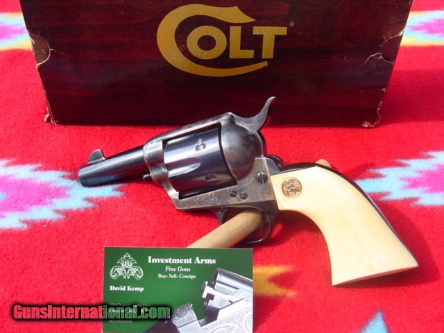 Description: SOLD Colt Single Action Army, Sheriff, Black Powder Frame factory Ivory grips with Colt medallion, with box papers even hang tag. Very nice and hard to find in BP frame and factory Ivory sheriff with great color,almost a carmel/coffee color as they are aging.This was apparently Custom Shop Run (P2830M) done in 1984 SA694XX(have seen SA69450 sell recently same configuration-box had "1 of 46") Mint-unfired,in box-end label is missing but it is the box it came in with papers,hang tag Offered at $2650 plus shipping-should be $45 with some insurance USPS Priority to your FFL Please email your phone number so I can call back if I miss the call-do not have text sorry, thanks. Be sure to look at my other offerings for more guns,Merkel's, Mannlicher Schoenauer's, Drillings, Combo's, Colt Saa's, Colt’s, Ruger’s, Browning’s,Kimber’s, Les Baer, Uberti's by both Taylor and Cimarron, and Ferlib, Merkel G&H-Arrieta,Grulla,Beretta,Parker Repro shotguns and other fine guns. Inventory always changing be sure to check with us for any needs. Local New Hampshire Buyer can view/purchase gun in person-after 4473/ NICS check, at Investment Arms business premise in New Hampshire Country Store, Rt 16 Chocorua NH. Please email/call 603.848.6184 Business or (603.323.8200 ) first to be sure its not sold. We also Buy and Consign Guns Payment by bank check, UPS money order-personal check held until clear 10 days. Buyer must provide dealers signed 01 FFL-email or hard copy, I will include a copy of my FFL with shipment. 3 day non firing inspection period(gun must be in same condition if returned)-starts when gun arrives at your dealer, on used guns only-not new guns sorry-they are under factory warranty, buyer pays shipping and insurance both ways if returned. SAFETY NOTICE: Buyer is solely responsible for determining that a used gun is safe to shoot. The firearms offered has been given a visual inspection for collection purpose only. It is a requirement that any used firearm be inspected by a qualified gunsmith before firing. By purchasing the firearm, the buyer agrees to hold seller harmless against damages, injury, or death caused by defective merchandise. SOLD |