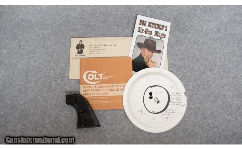 Description: Robert (Bob) Munden was an American exhibition shooter who performed with handguns, rifles, and shotguns. He is best known for holding 18 world records in the sport of Fast Draw and having the title "Fastest Man with a Gun Who Ever Lived" bestowed upon him by Guinness World Records. .44 Colt SOLD Barrels: 7.5 in Weight: 2 lb Item Location: Billings, MT |