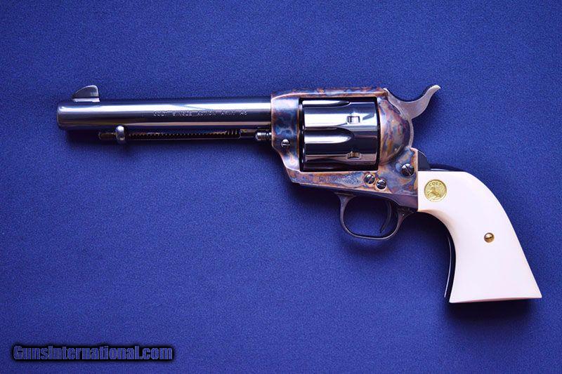 Description: Consecutively Numbered Pair, Colt SAA 3rd Gen 45’s, manufactured 1997. Both feature 5 ½” blued barrels with color casehardened frames, fitted with authentic 2 piece Ivory grips with gold Colt medallions. One Colt is as New while the other shows a couple very light lines on the cylinder, otherwise as new. Sorry no boxes. Big Iron Firearms & Collectibles is a family owned & operated business. We are a licensed FFL Dealer & stand behind all of our listings. We try to replicate all aspects of the firearm in our photos & if you’re not completely satisfied, we will refund 100% of the purchase price during the 3 day inspection period. We Do Not Charge credit card fees, all major credit cards are accepted. We offer a 2% discount on sales price for items purchased with a money order, cashier or personal check, with item held until cleared. Will M. at 260-319-6961 SOLD |
