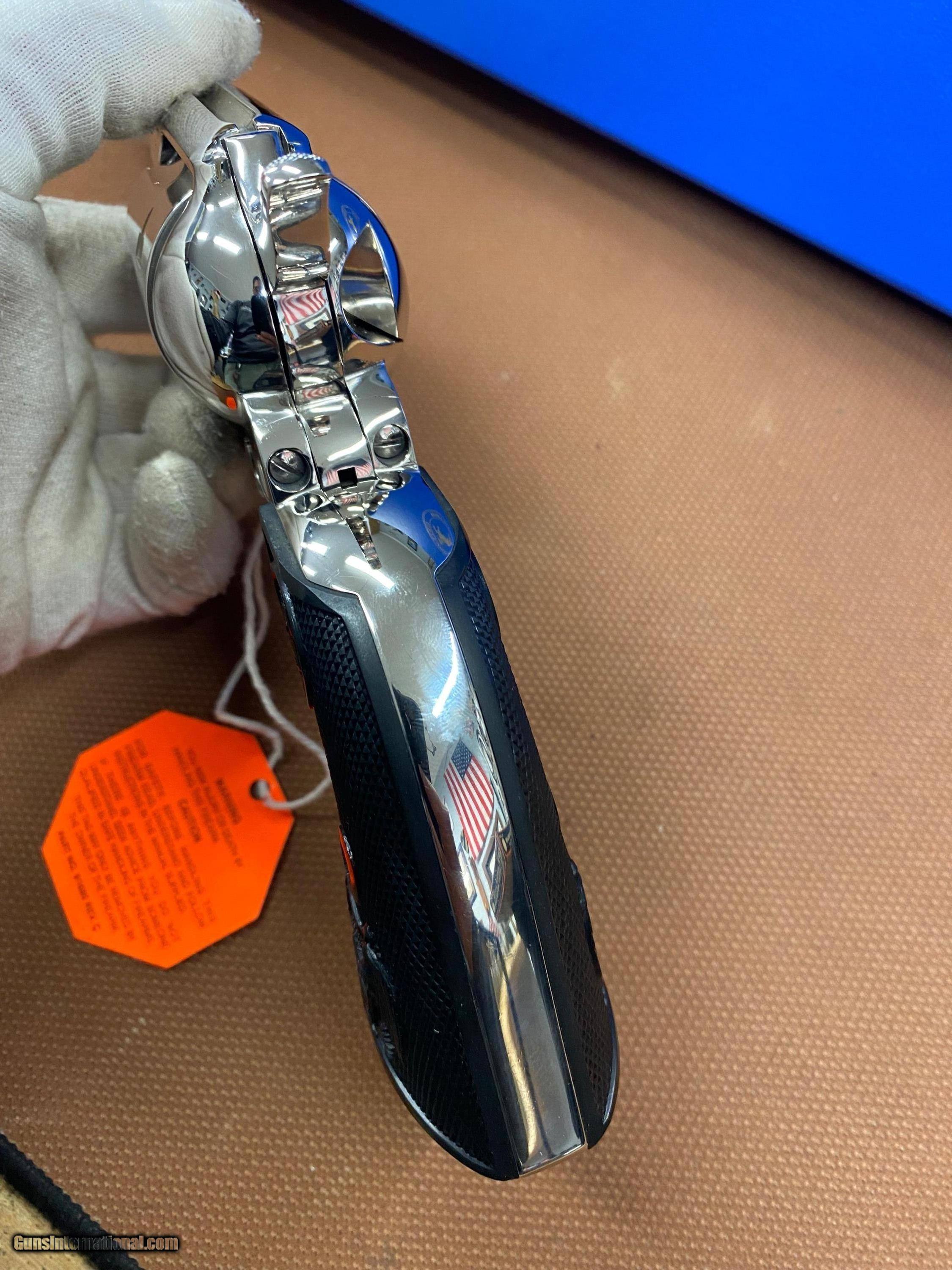 Description: ***SOLD*** Amazing 3rd generation Nickel Colt, from Custom Shop, 44-40, 5.5" barrel, with all original paperwork, box and white sleeve. This beautiful revolver was made in 1996, and it has remained Unfired since it left the factory! Everything on this gun is absolutely MINT, like NEW... chambers, bore, nickel finish, grips, even paper work and boxes! This would make an excellent addition to any serious collection! Cashiers checks and usps money orders, same as cash. Personal checks will be held until funds clear (3-5 business days). Shipping with insurance to Continental US only will be $75 (AK & HI extra). No sales to California! SOLD Handgun Caliber: .44-40 Winchester (.44 WCF) |