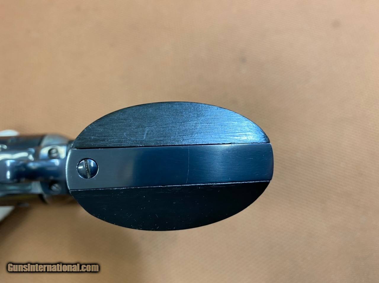 Description: ***SOLD ***Nice Colt SAA 3rd generation (1982), in 45 Colt with desirable 4 3/4" barrel. This revolver comes with a very nice dark bluing and color case hardened receiver. It does not appear to have been shot much at all. Chambers and bore are excellent! The action is smooth and crisp! Grips are in great shape! There is a little imperfection on the rear side of edge of the front sight (see picture). Price reflects this. Overall this is a beautiful Colt SAA revolver. SN SA609xx Cashiers checks and money orders same as cash. Personal checks will be held until funds clear (3-5 days). Shipping insured will be $55 to Continental US only (AK & HI extra). No sales to California. SOLD Handgun Caliber: .45 Colt |