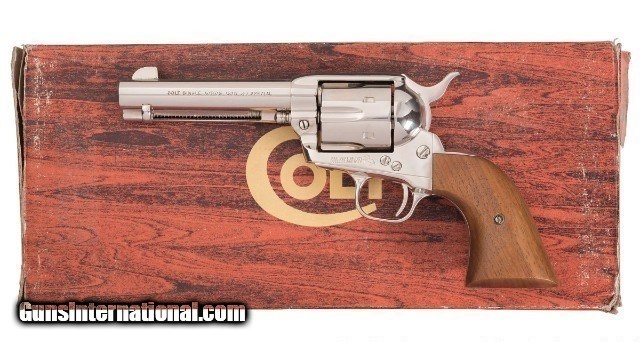 Description: Nickel Colt 3rd Gen SAA .44 1980 4.75" Box Walnut - Used SOLD |