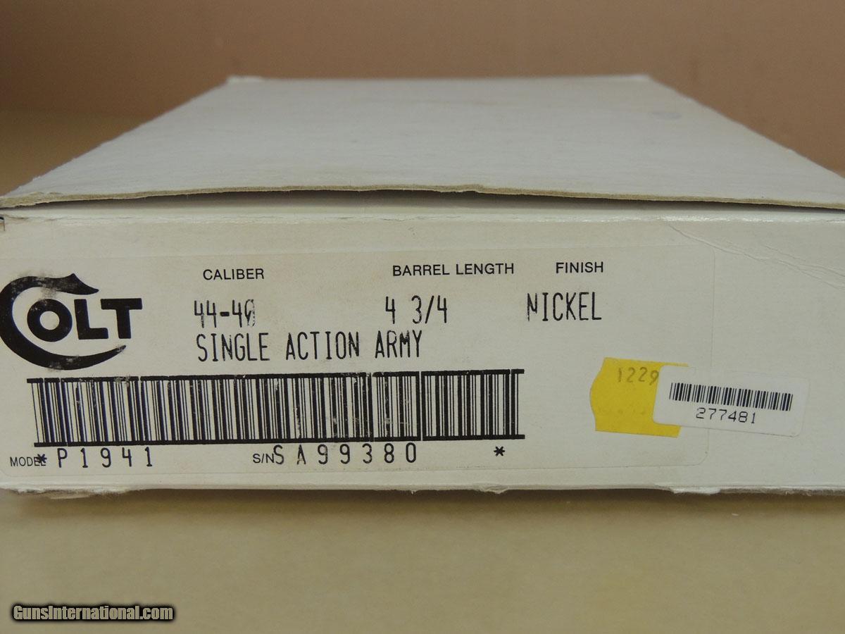 SALE PENDING------------------------------------------------------------------------------COLT NICKEL SINGLE ACTION ARMY 44-40 IN BOX (INVENTORY#9337)