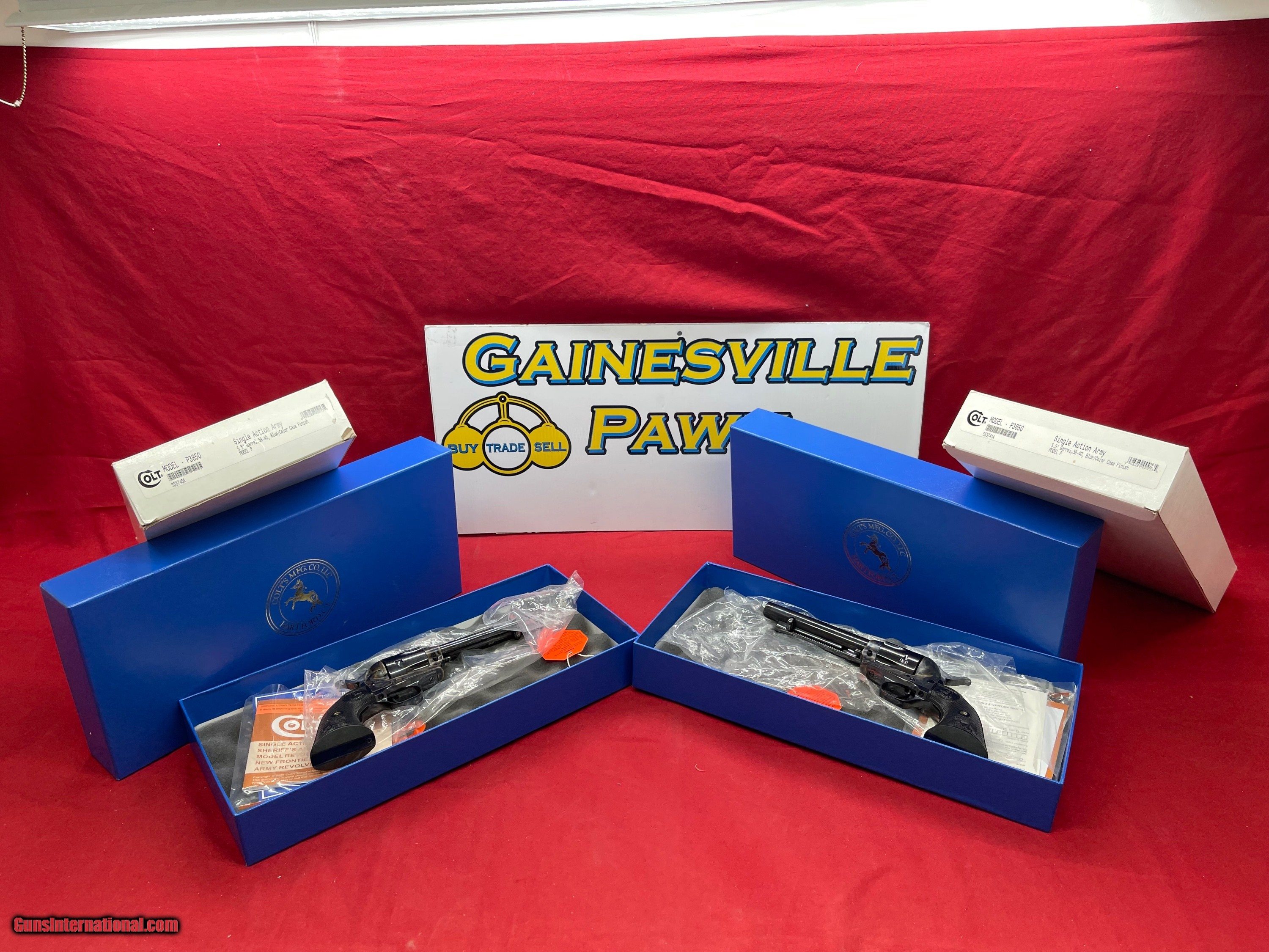 Description: Another great item from Gainesville Pawn! Up for sale is a Pair of Colt SAA. These 3rd Generation Guns have consecutive serial numbers. They are the P series, Blued Case hardened with 5.5 inch barrels and 38/40 caliber. They are unfired, unturned still in factor grease in their blue boxes and white outer boxes.Please see photos. *Please be aware that all items are sold “AS IS”. Ask questions BEFORE buying. Feel free to call us at our store (352) 240-6452 or (352) 339- 4780 or email us at Gainesvillepawn(at)gmail(dot)com with ANY questions. We do not accept trades or offers through through Guns International We only entertain trades and offers through our store. $75 shipping and handling. Insurance extra. We only accept USPS money orders and major credit cards for payment. 3% convenience fee for credit cards. WE collect Florida state sales tax for in state sales. Please be aware that this item is for sale in our store as well as the occasional gun show so it may be sold there at any time. We will not ship the item until you have your dealer/receiving store email us a signed copy of their FFL to gainesvillepawn(at)gmail(dot)com Handgun Caliber: .38-40 Winchester (.38 WCF) Manufacturer: Colt Model: P3850 Serial Number: S53740A, S53841A Barrel Length: 5.5 inches Condition: New Metal Condition: New Wood Condition: New Bore Condition: New Price: $6,199.00 Shipping: $45.00 Buy Now Contact Seller |