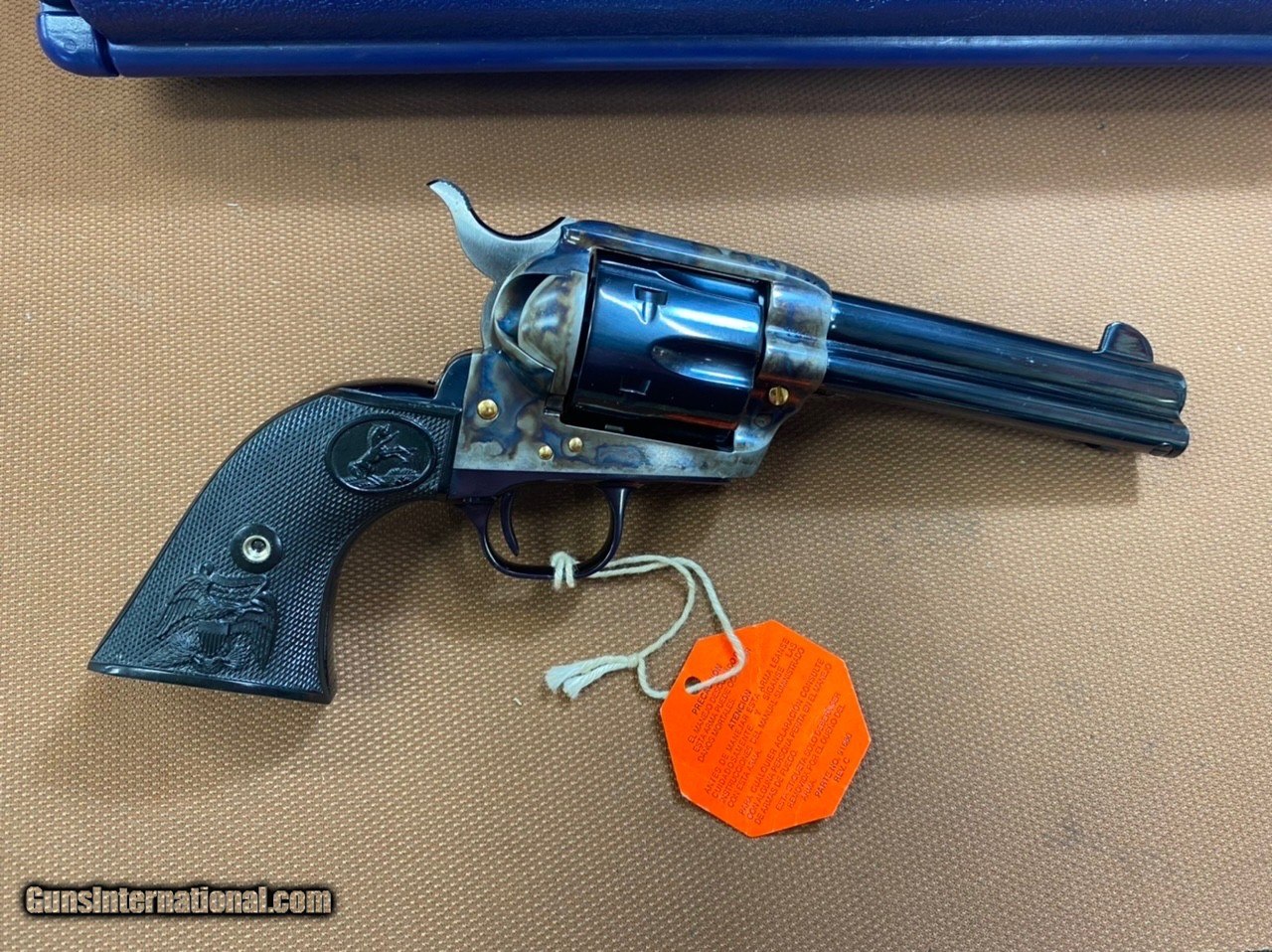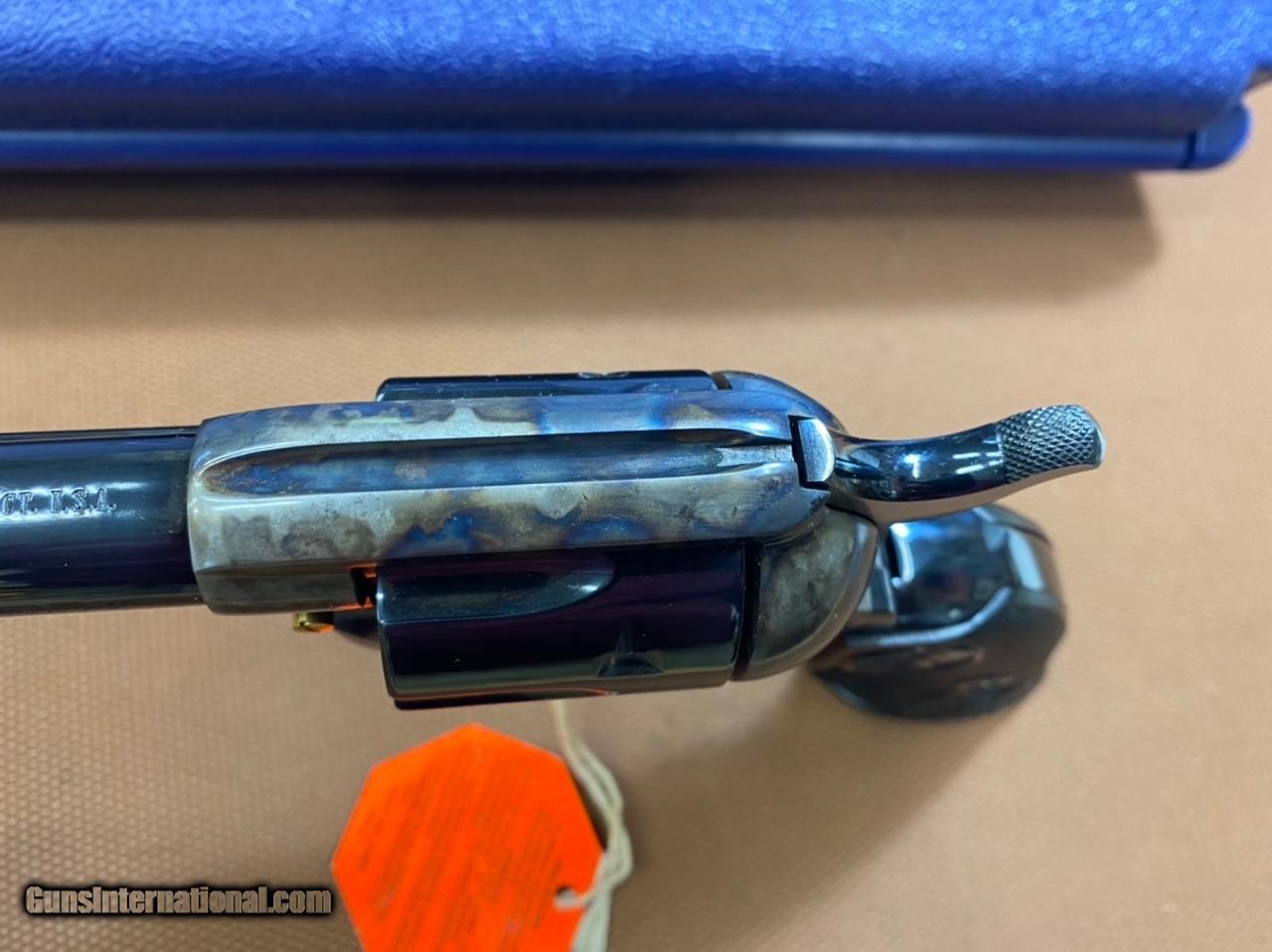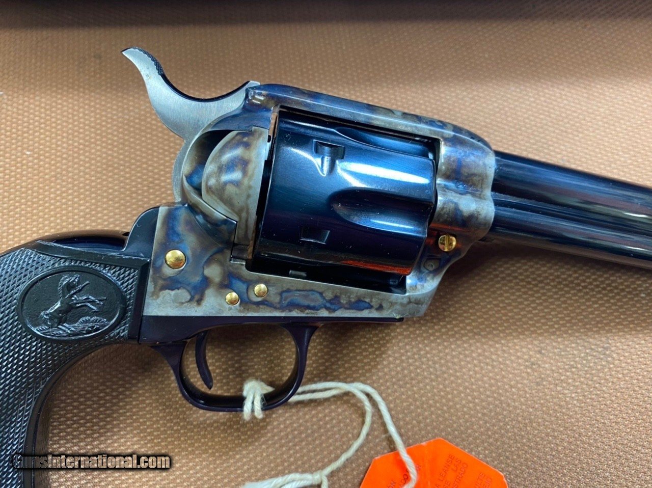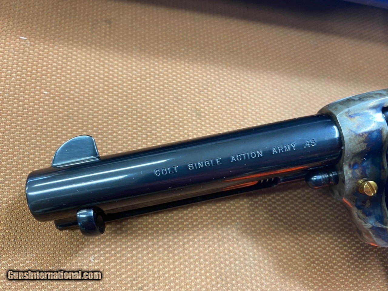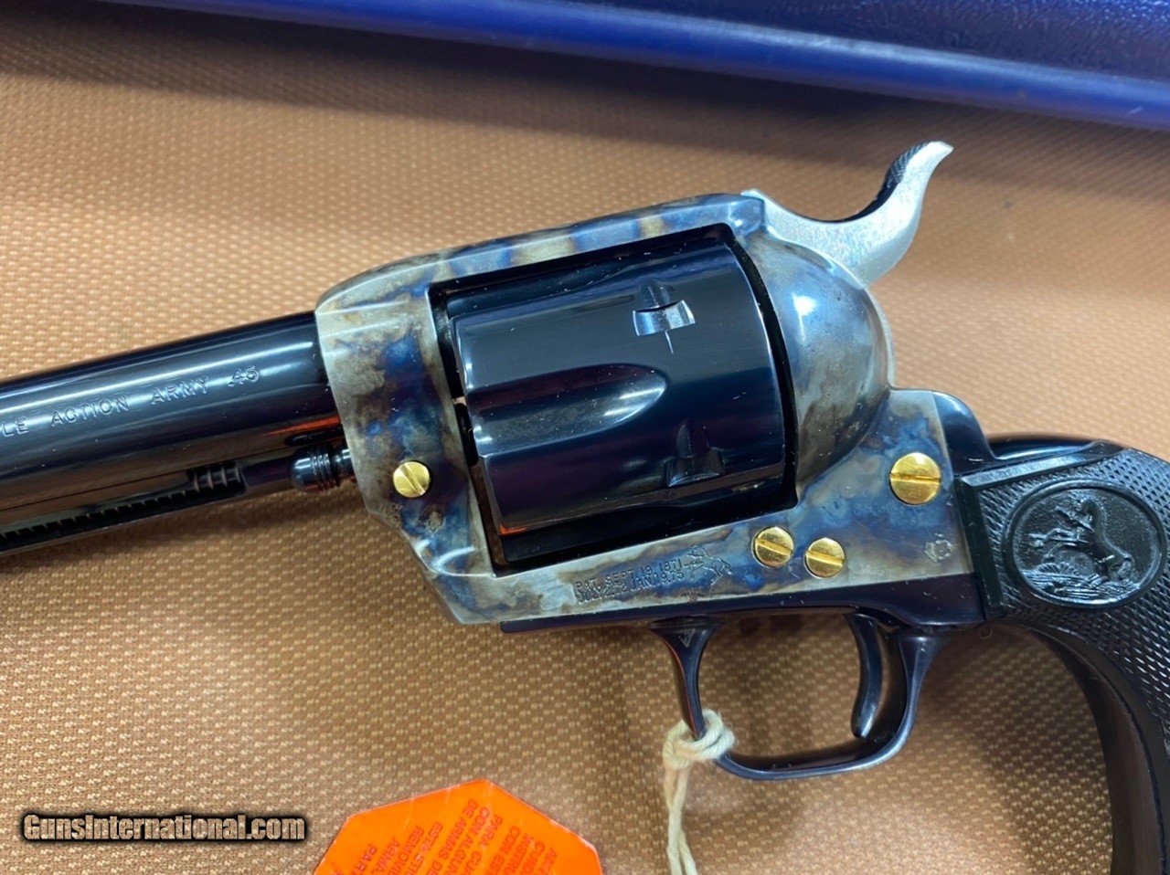 Description: ***SOLD*** UNFIRED! Rare, Beautiful Colt SAA 3rd generation (1998) in 45 colt with 4 3/4" barrel. Model P1840G, with gold accents, screws and cylinder release latch! This gun has the typical gorgeous dark bluing of the post 1996 SAA revolvers. The case color hardened is very vivid. Bore and chambers are excellent. No indication this gun has ever been fired at all! It comes with original blue plastic box with lock and paperwork! This gun is Like New, in outstanding condition as the pictures show! The action is smooth and the finish is beautiful! Very hard to come by in this configuration! SN S25946A Cashiers checks and money orders same as cash. Personal check will be held until funds clear (3-5 days). Shipping insured to Continental US only will be $65 (AK & HI extra). No sales to California! SOLD Handgun Caliber: .45 Colt |