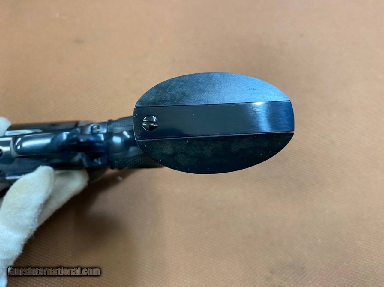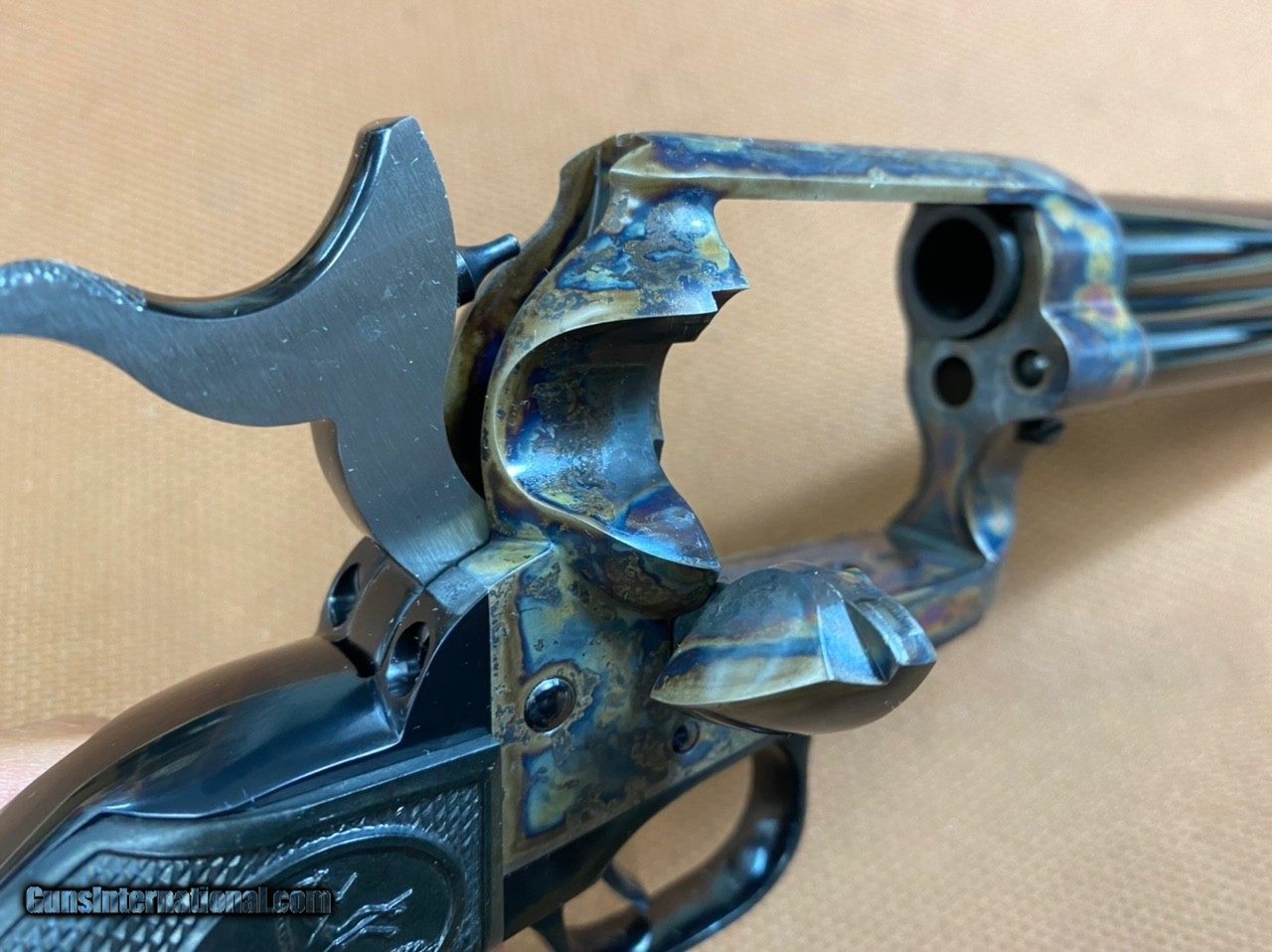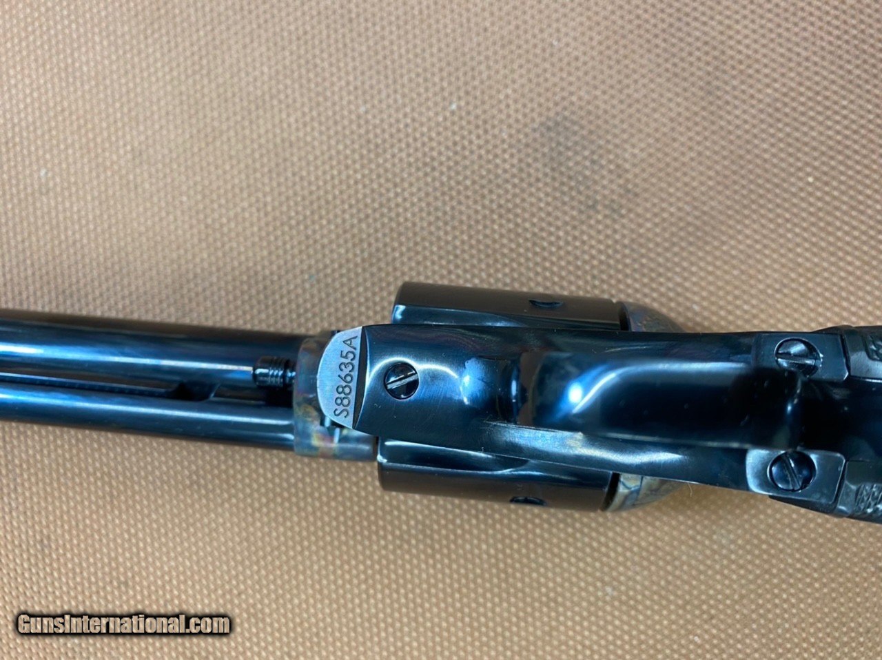 Description: ***SOLD*** Very Nice Colt SAA 3rd generation (2000-2007 approx.) in 45 colt with desirable 4 3/4" barrel. Beautiful dark bluing finish with very vivid case colt hardened receiver. The case hardening is beautiful, with a lot of orange accents! It appears to have been fired very little, if any at all! There is no visible turn lines on the cylinder! Original stock in excellent shape! The action works flawlessly, very tight and crisp! Cashiers checks & money orders same as cash. Personal checks will be held until funds clear (3-5 business days). Shipping insured will be $55 to Continental US only (AL & HI extra). No sales to California! SOLD Handgun Caliber: .45 Colt |