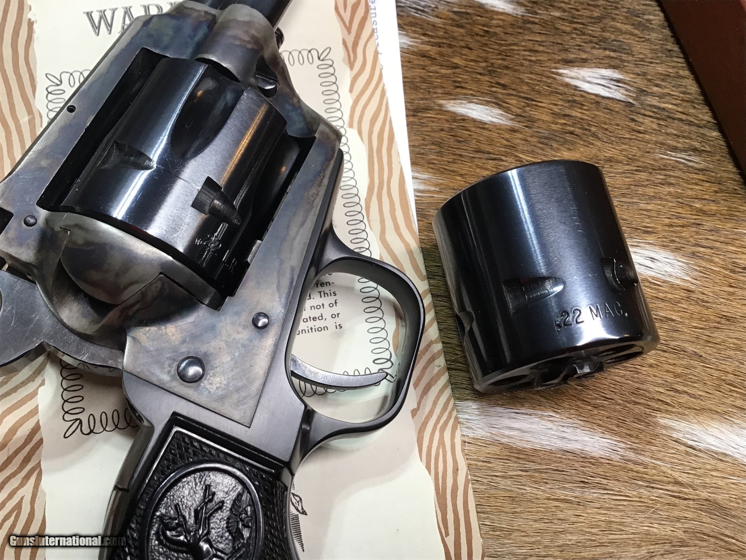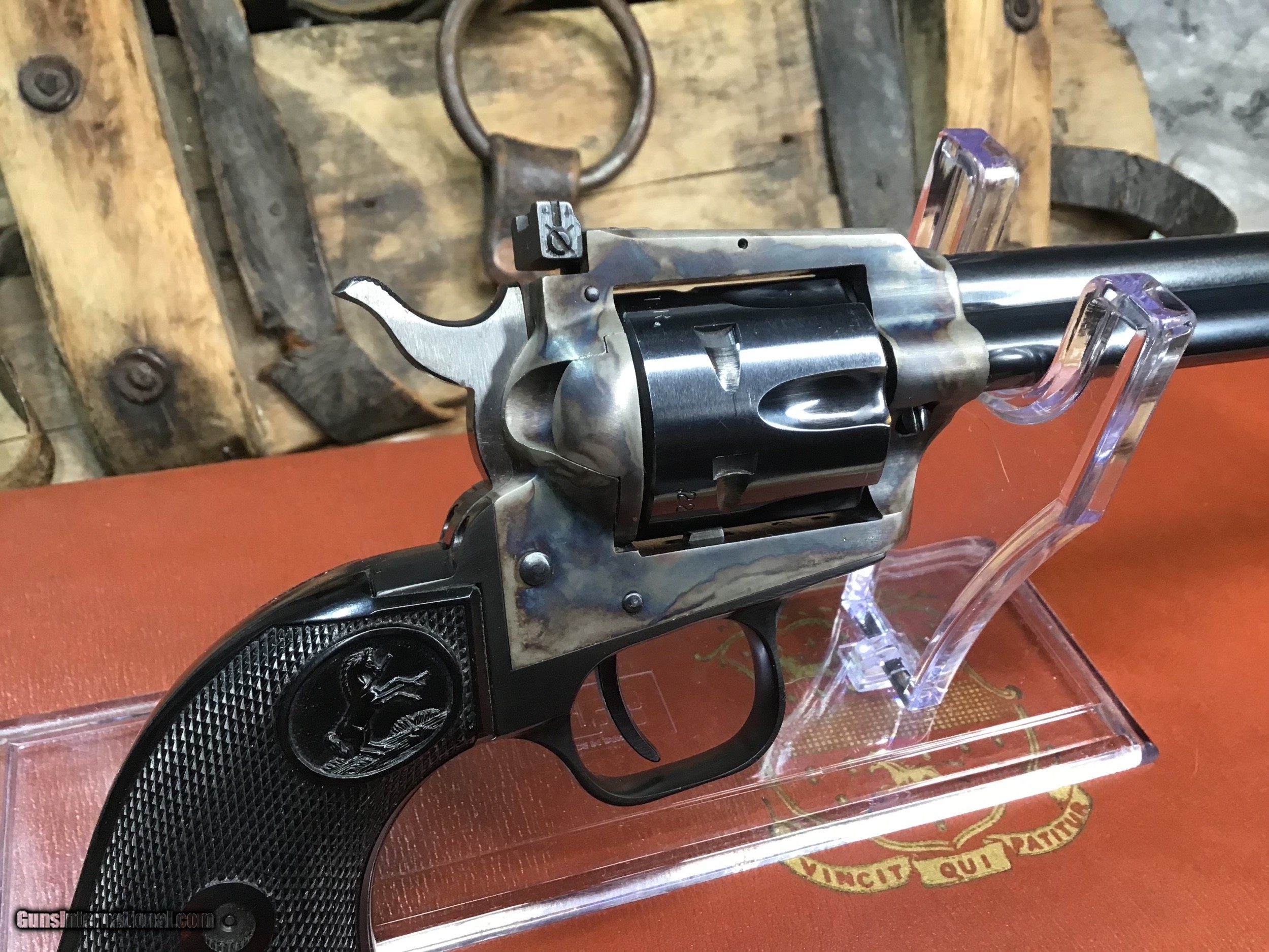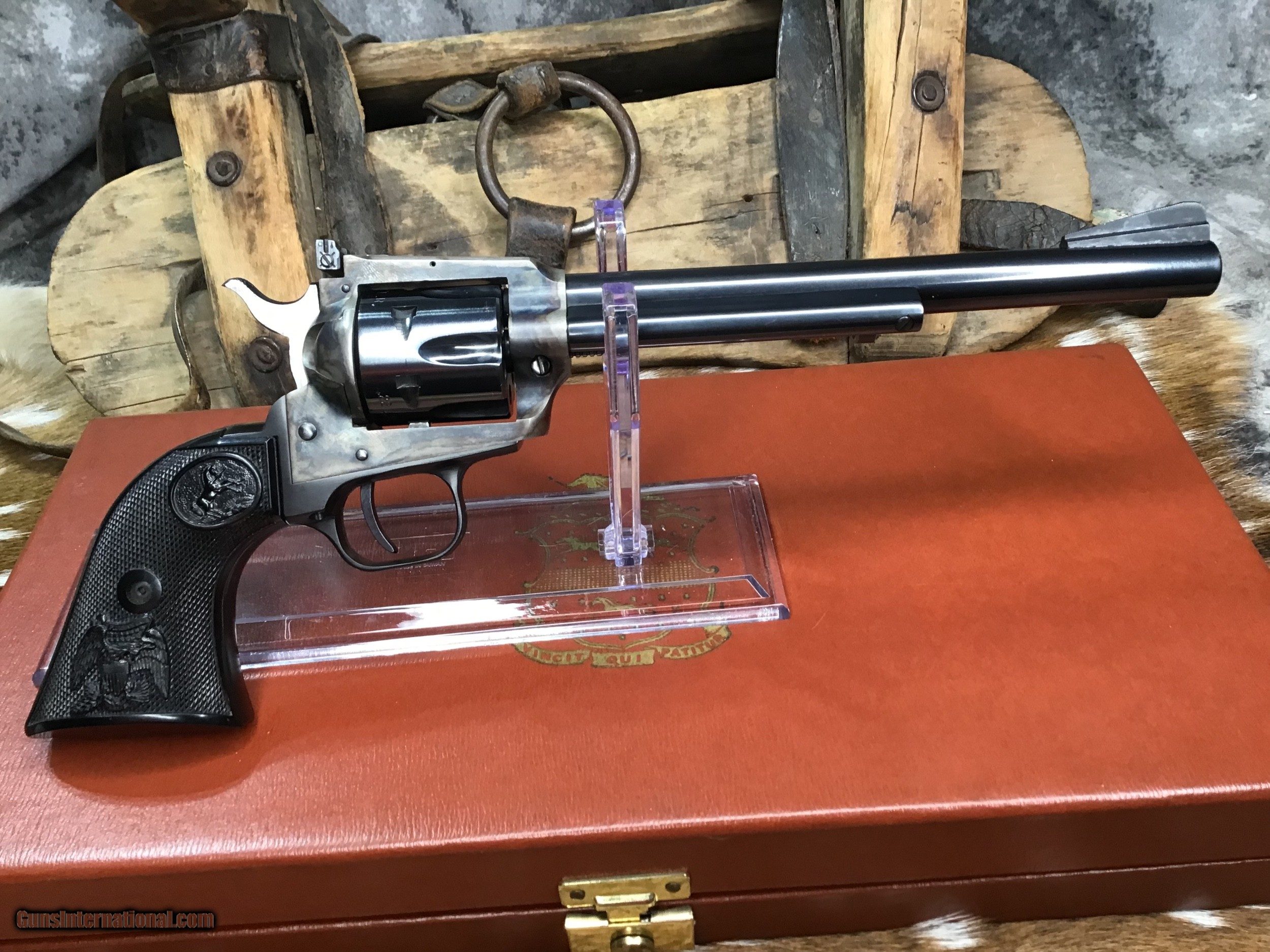 Description: 1975 Mfg. Colt New Frontier Buntline SA Revolver wearing a 7.5 inch barrel and twin cylinders chambered in .22 LR/.22Mag. Bluedfinsh with case colored frame. Black Eagle grips. Gun comes in a Colt Custom Shop leatherette presentation case with owners papers. Gun appears unfired since factory with no wear evident. A great pack or camp gun that the whole family can enjoy plinking. Add 3% if paying with credit card. Free shipping for US Veterans. God Bless America from a proud American, and a Viet Nam Vet , thankful for our freedoms.. paid for by the Blood ,Sweat and Tears of our brave men and women in uniform. Ten Below Firearms is a Veteran owned and operated business. We specialize in out of production models of high quality firearms. We love to ship! We ship to all states where legal, just give us a call! Handguns normally ship for $35 and Long guns for $45 up to $75 for extra length long guns. That's 2-3 day USPS Priority shipping, Delivery conformation and with tracking number. Optional Postal insurance is additional $1.70 per $100 and highly recommended. We are OPEN BY APPOINTMENT ONLY FOR IN PERSON VISITS, We trade, sometimes. Layaway:If needed we offer a 60 day layaway program. Terms, 1/3 of purchase price down, 1/3 due in 30 days, and the final third to include card fees and shipping due at 60 days. Funds are non transferable and non refundable .Layaway is not available on negotiated prices. SOLD Handgun Caliber: .22 Long Rifle, .22 WMR (.22 Magnum) Manufacturer: Colt Model: New Frontier BUNTLINE Barrel Length: 7.5 inch Condition: Excellent Metal Condition: Excellent Bore Condition: Excellent Barrel Type: Round Action: SA Triggers: SA Finish: Blued/case colored Sights: Target adjustable Manufacture Date: 1975 Case: Presentation case Item Location: Mn |