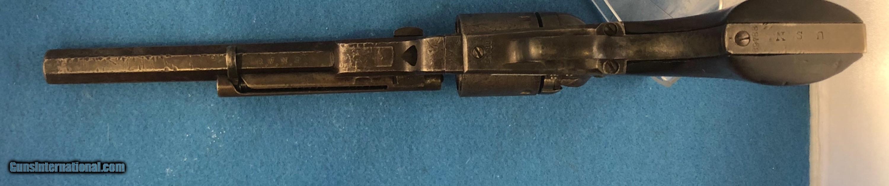 Description: Inv. 6575 Colt 1851 U.S, Navy, Navy Factory Conversion. Ser 89788*, An all steel Navy Navy Cal .38 What a rare find this one is.*(Flayderman Ref. 5B-122).This indicates that serial numbers 41,000-91,000 were returned to Colt by the Navy for conversion. to cartridge The condition is only fair.. However the rarity and history easily makes up for it. The gun has no original finish. However there no areas of rust or deep pitting. There are numerous areas of slight surface pin pricks and many surface dings. The balance is a soft aged patina. All numbers match, the frame, cylinder, barrel group, steel trigger guard and gripstraps. The under side of the barrel is stamped with inspectors initials, R.W.M. and an Anchor. The bottom of the grip strap is correctly stamped, U S N. The cylinder does appear as if it has been cleaned at some time in the past. The walnut grips were probably replaced when the conversion took place as they appear to be in really nice condition. Retaining about 80% of the original factory lacquer. There are only two surface dings in the right panel with no real damage elsewhere. The bore seems to be worn but with well defined rifling. The gun indexes properly, locks up tight and functions perfectly. This rare piece of Civil War history has seen some continuous service over the years. It would certainly make a proud conversational center piece to any collection..........$3495....OBO To purchase this firearm or if you want to request more information contact us at: Email ckgunsymail Phone 201-512-0002 Cell 201-575-6838 FAX 201-215-4759 We accept most major credit cards. Prices shown are Discounted 3% for Cash or Check. The buyer must be familiar with all the laws governing the purchase and the ownership of firearms in their own city and state. The Yankee Armorer, Inc is not responsible for any failure to comply with or observe these laws. The Yankee Armorer, Inc will only ship after full payment and receipt of all required documents. Shipping: To be calculated at the time of sale. New Jersey buyers are subject to a 6.625% sales tax. The Yankee Armorer, Inc offers a 3 day inspection period with FULL refund upon return of intact firearm and in the original condition. The Yankee Armorer, Inc offers a no interest lay away program - 25% down; 25% in 30 days; 25% in 60 days; and full payment in 90 days. Any violation of this policy is subject to restocking and forfeiture of all payments. Any variation from this policy must be agreed to in advance. Unshipped Cancelled sales are subject to a 20% restocking fee. Be advised that all firearms sold by The Yankee Armorer, Inc. are sold as collector’s items. They have not been fired or tested for safety and must be examined by a license gunsmith prior to use. By purchasing any item from the (SELLER), you are agreeing to hold the (SELLER) free from any damages or lawsuits of any nature. Any item left for transfer or storage will be charged to $25.00 per month, per item from the day of its receipt. Any variation from this policy must be agreed to in advance. Store hours 9:00 am to 5:00 pm Tuesday -Saturday. It's always best to call for appointment. Store 201-512-0002, cell 201-575-6838. Kindest Regards, Charles and Lise Kaplan (11th. Airborne, 188th. Para/Glider.) The Yankee Armorer Inc, 107 Miller Road, Mahwah, NJ 07430 201-512-0002 cell 201-575-6838 Fax 201-215-4759 SOLD Manufacturer: Colt Model: Navy Serial Number: 89788 Caliber Info: .38 Condition: Used Action: Single |