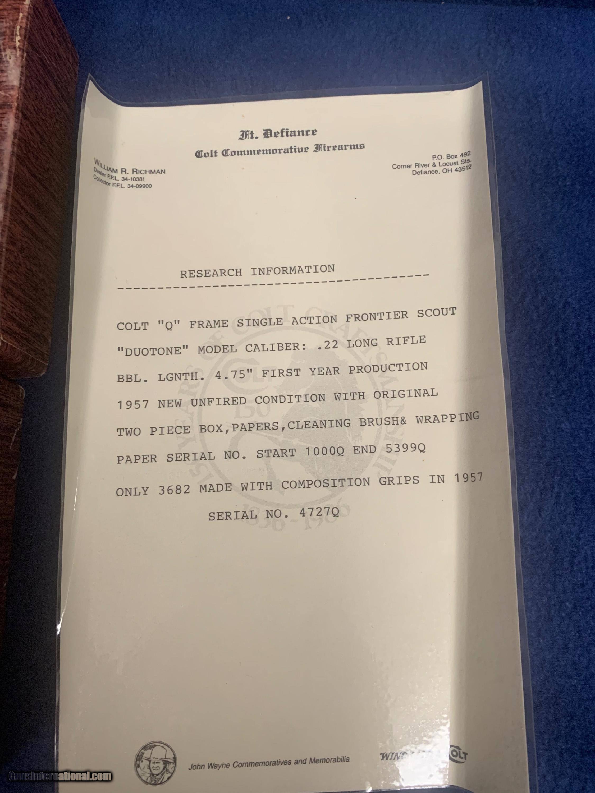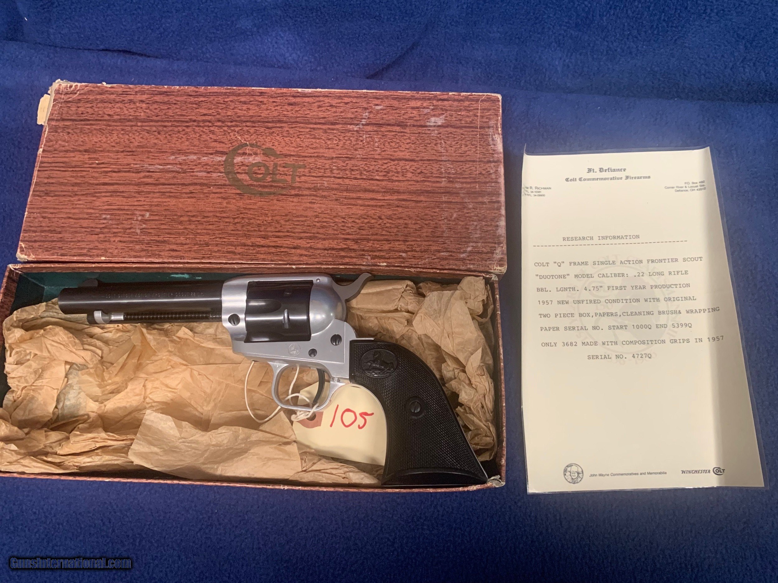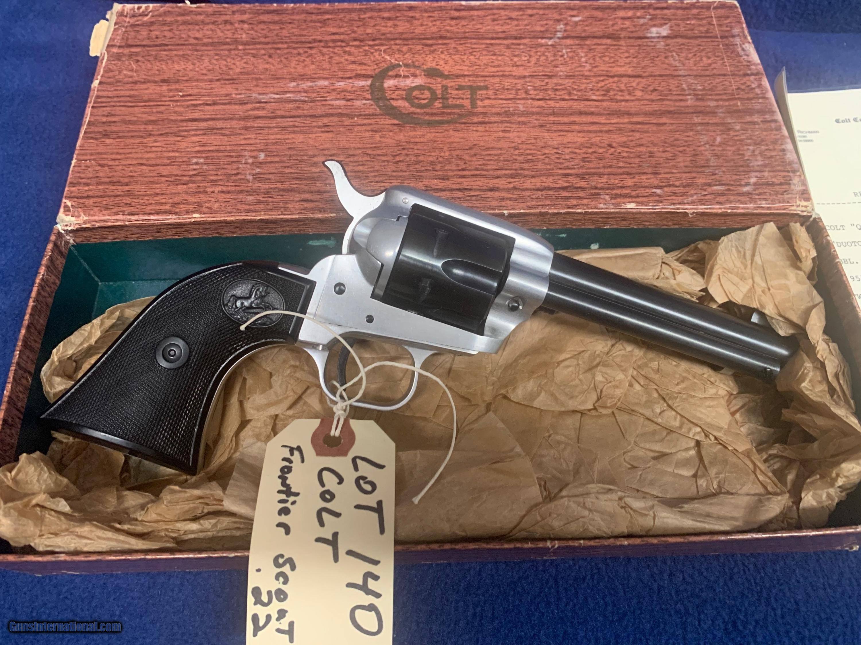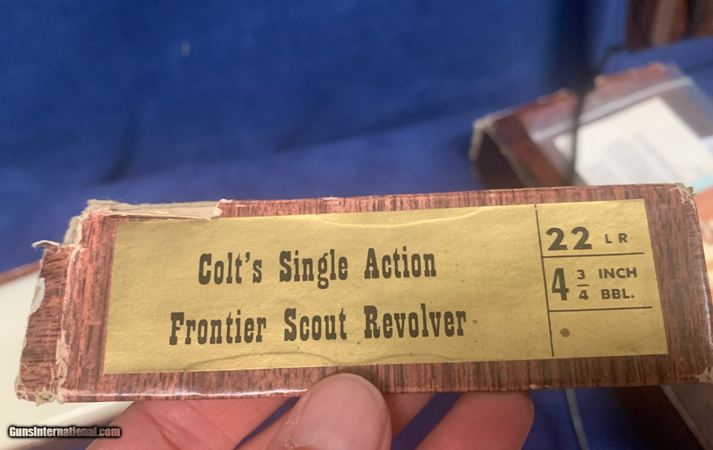 Description: Sale pending!!!!!!Colt 1957 Single Action Frontier Scout .22LR As new in box 3 day inspection Shipping is $50 Priority Mail - Insurance optional Certified Checks or Money Order Ohio residents add 7.25% tax No California sales FFL required SOLD |