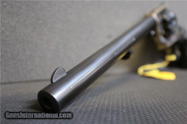 Description: Old New Stock Colt Peacemaker Buntline single action Revolver. Made in 1977. Collectors Grade, 7 1/2" Barrel comes with 22LR and 22 Magnum Cylinder, Original Box and Papers included. Aside from the Colt factory test fire, this beauty has never been shot and is truly a Collectors dream. The only downside to this set is the Original Box has wear from opening & closing the box and one end flap is no longer attached - it is there, but opening & closing has caused the hinge crease to be unattached. If you are wanting to add a complete, like new in its original box Colt Peacemaker Buntline to your collection, this is it !!!! Should you have any questions, please do not hesitate in contacting me! SOLD Manufacturer: Colt Model: G1471 Serial Number: G 195402 Caliber Info: .22 / .22 Mag Bore: .22 Chambers: 6 Condition: Like New Metal Condition: Like New Wood Condition: Like New Bore Condition: Like New Barrels: 1 Barrel Type: 7 1/2 Action: Single Triggers: 1 Manufacture Date: 1977 Extras: .22 Mag Cyl Item Location: SC |