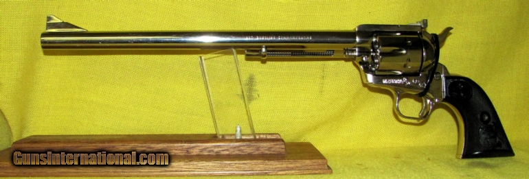 Description: COLT (66) model NED BUNTLINE COMMERATIVE in .45 LONG COLT CAL., with 12" barrel. Color NICKEL. THIS COLT IS 98% PLUS CONDITION IN ITS FACTORY DISPLAY CASE MISSING THE PLACK AND SIX ROUNDS OF DUMMY AMMO. Condition 98% PLUS. Serial number NB1812. SOLD |