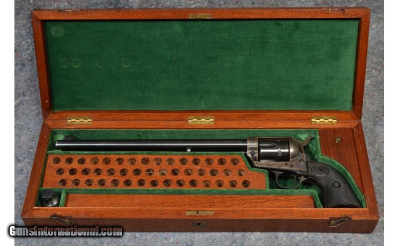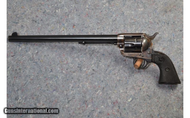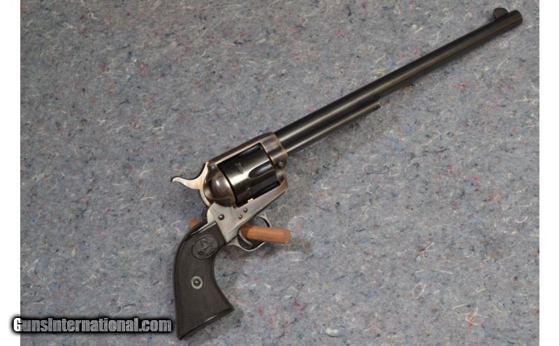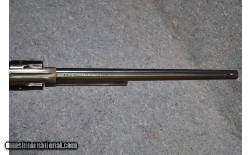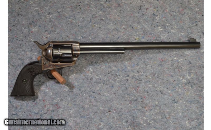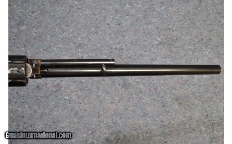 Description: This Buntline is in great condition and doesn't have very much wear. The cylinder has the most wear but the barrel has a few minor scratches. The frame has a couple of spots with faint speckling with the most located on the backstrap. The grips are in very good condition with very light handling wear marks. The bore appears to be in excellent condition and is bright and shiny with sharp rifling. SOLD Manufacturer: 1958 Caliber Info: .45 Metal Condition: Very good with some light handling wear and faint speckling (on the frame) Bore Condition: Excellent, bore is bright and shiny with strong rifling Barrels: 12 Triggers: Single Action Weight: 2 lbs 13 oz Sights: Groove rear sight with fixed blade front sight Extras: Case Included Item Location: Wichita, KS |