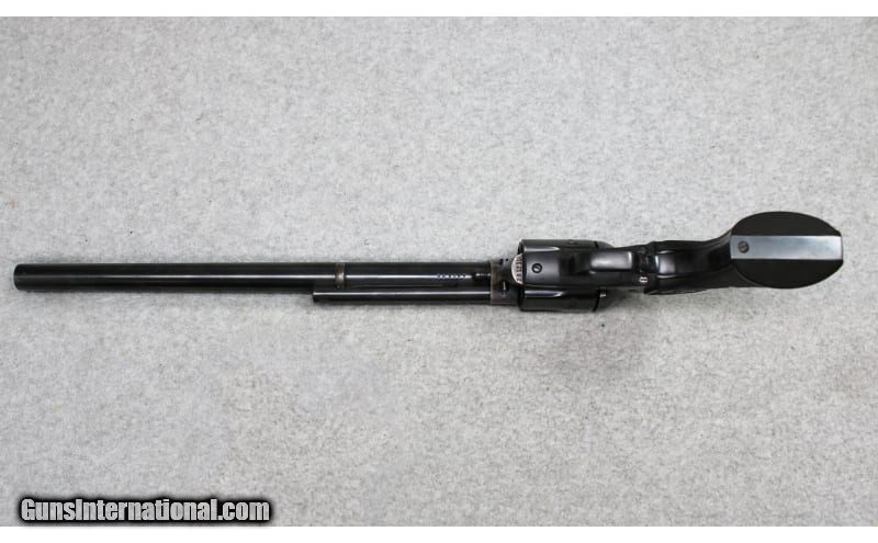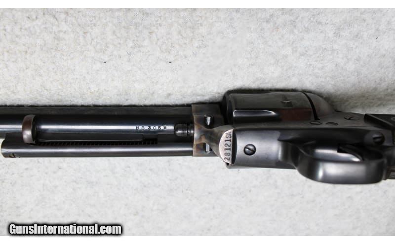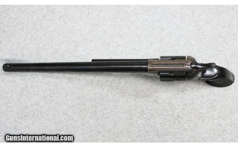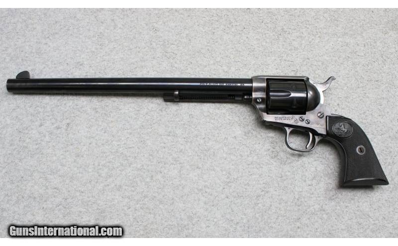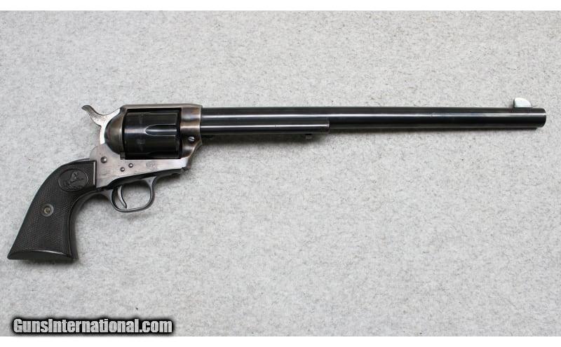 Description: Colt Buntline Special single-action revolver chambered in .45 Colt. Features include a 12-inch blued barrel and color casehardened frame. The serial number (28121SA) indicates that the pistol was produced in 1959. No accessories. .45 Colt SOLD Curio/Relic: Yes Metal Condition: Very Good with Minor Handling Marks Wood Condition: Very Good with Minor Handling Marks Bore Condition: Bright And Clear with No Pitting Barrels: 12 inch Triggers: SA Butt Pad: Hard Rubber Weight: 3 lbs Item Location: Fort Worth, TX |