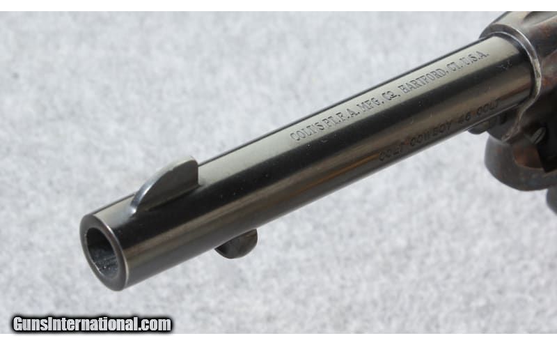 Description: In 1999 Colt introduced a more economical single action revolver, the Colt Cowboy. I has a transfer bar safety and can be safely carried with the hammer down on a loaded chamber. This model was discontinued just a few years later in 2003. This Colt Cowboy was manufactured in 2001. .45 Colt SOLD Metal Condition: Excellent with a little wear on the sharp edges and a turn line on the cylinder Bore Condition: Excellent Barrels: 5 1/2 inch barrel Triggers: Single action Weight: 39 OZ. Sights: Square notch rear with blade front Item Location: Lehi, UT |
