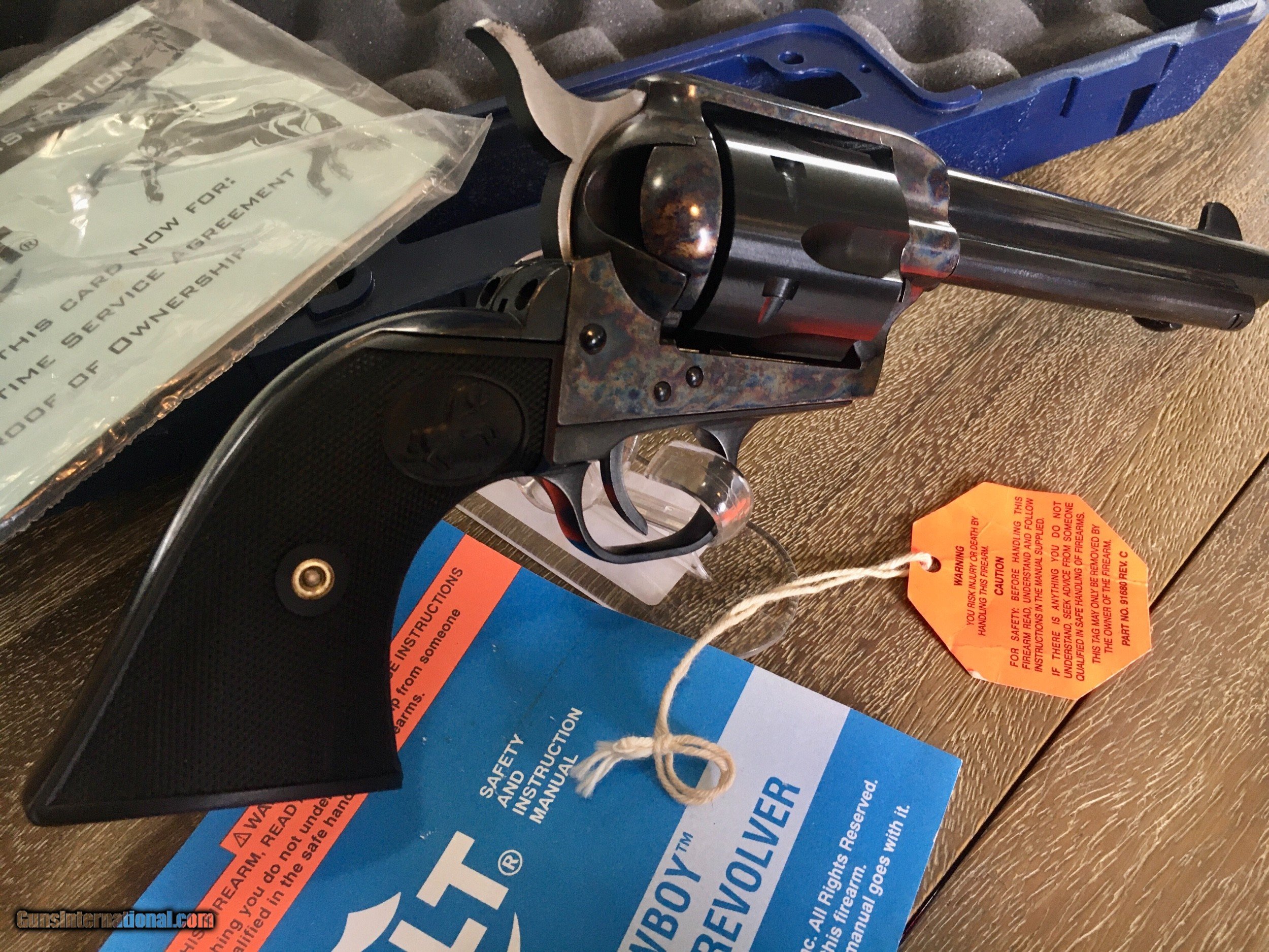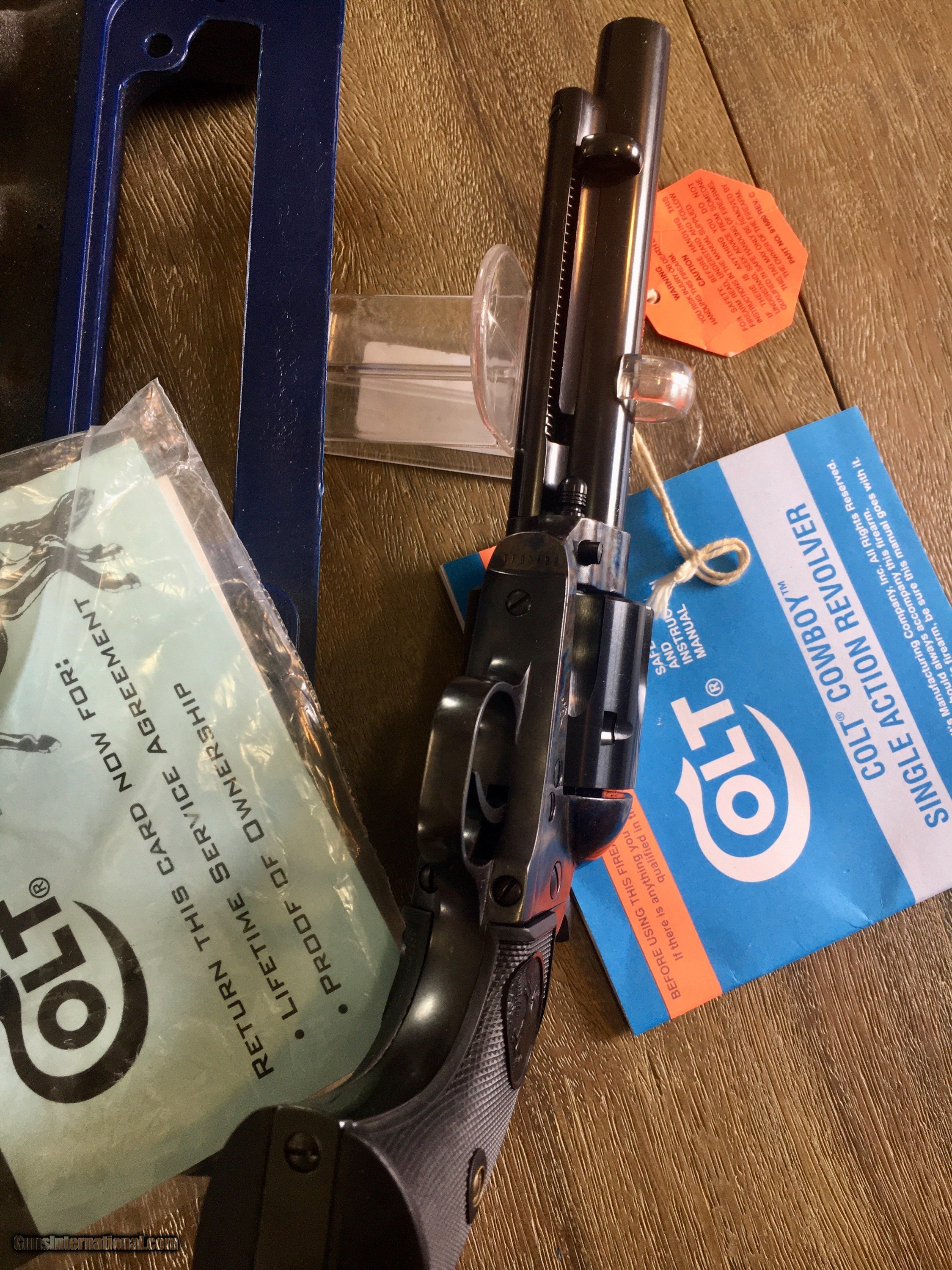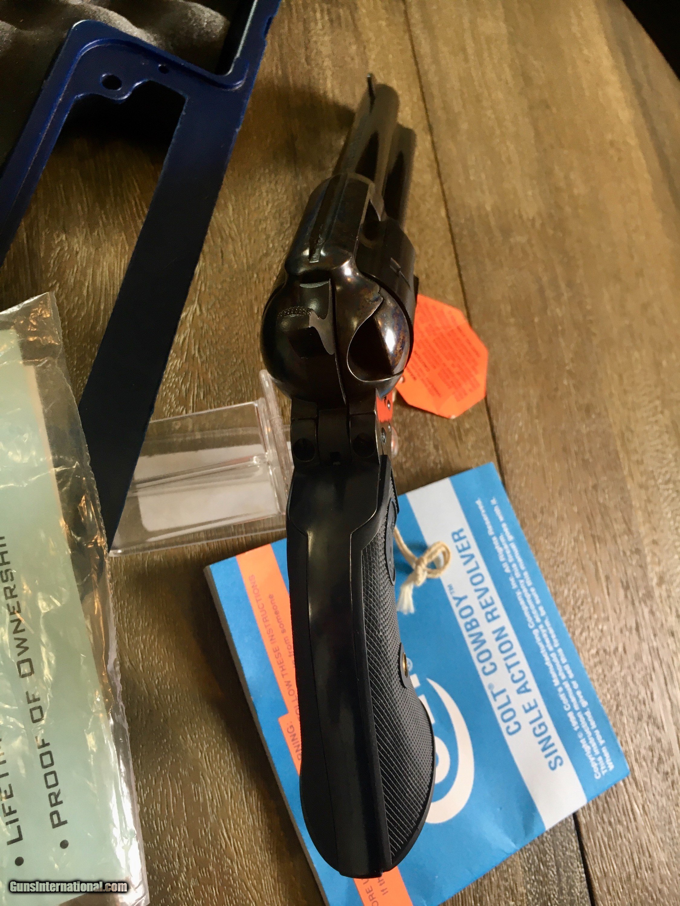 Description: Colt Cowboy model with the transfer bar hammer. Blue and color case hardened with a 5 1/2 barrel in .45LC. Includes factory box and papers. SOLD Handgun Caliber: .45 Colt Manufacturer: Colt |