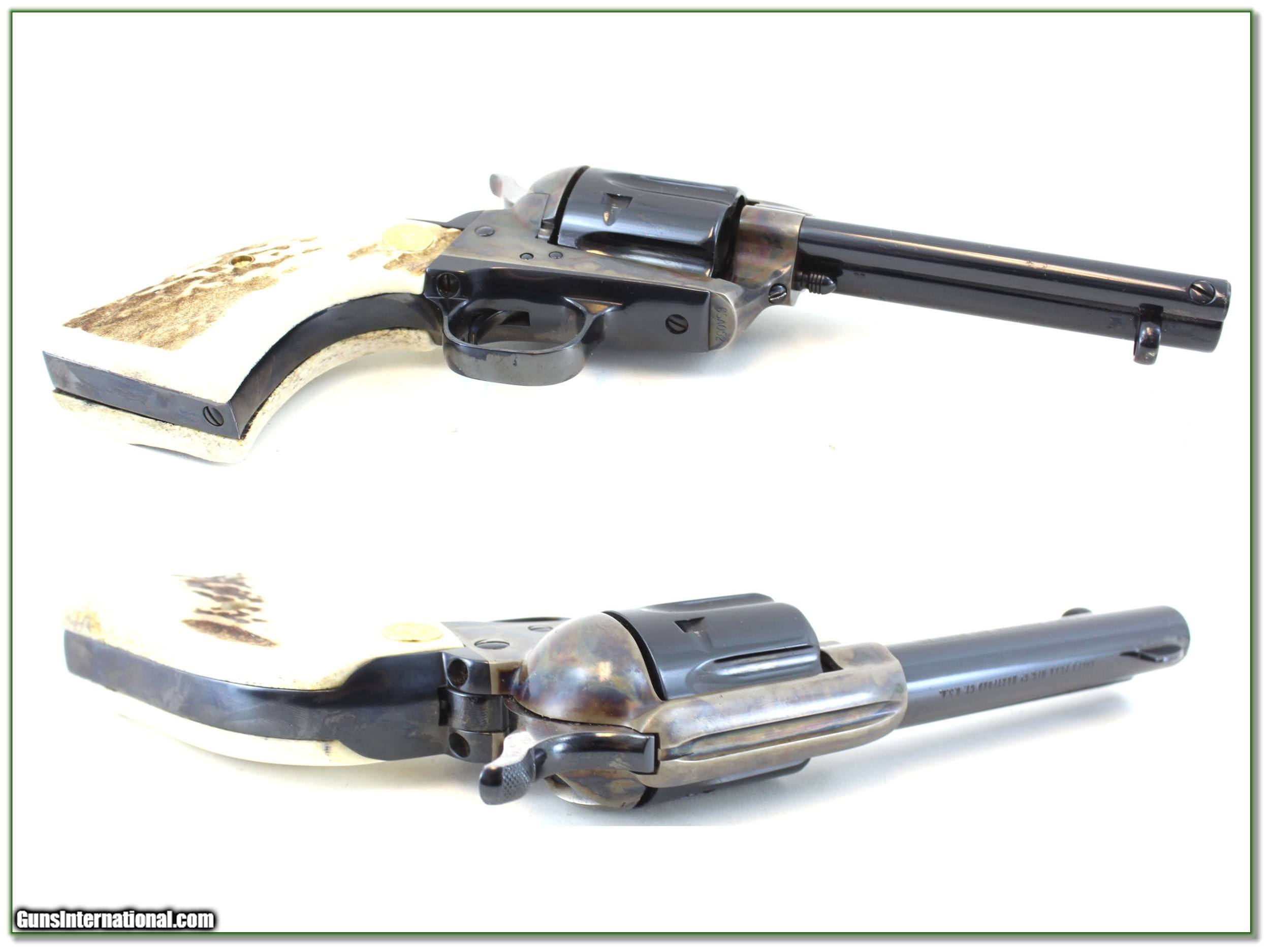 Description: This is a Single Action Colt “Frontier Six Shooter”. It has both 44-40 and 44 Special cylinder and comes unfired in display case as seen. It has both Horn and original black Colt grips. The barrel is 4.74in and the case colors are beautiful. They just don’t make them like they used too! I am selling this one on consignment and as such lay-a-way can’t be used. It does of course have the standard 3-day inspection. Shipping and insurance is $59. Please email me with any questions or larger pictures. (Consign your quality firearms with Shooting Investments for only 12%! Let me know if you have any you would like to sell!) 20-0156 Payment: Payment is by Money Order, Cashiers Check or Personal Check. I can now also accept Credit Cards (MasterCard, Visa, Discover & American Express) with a 3% convenience fee. Shipping: The shipping charge will be listed in each description. It is $39 for most firearms. Some heavy guns or those insured for over $2000 will be higher. Shipments to Alaska and Hawaii are higher because air shipment is required. Most firearms are shipped on Tuesday and Thursday and usually in 5 days of receipt of payment. We package all shipments carefully and insure them. Optics are shipped Priority Mail and most other non-firearm shipments are shipped First Class. Returns: Our return policy is simple. If for any reason you are not pleased with your purchase, you may return your item for a full refund of purchase price. Ammunition cannot be returned. It is important to us that you are happy. Guns cannot be fired or dissembled before returning them and they must be returned in the same condition as received. Notification of a return must occur with-in 3 days of receipt at your dealer. Shipping, convenience and dealer fees are not refundable and are the responsibility of the buyer. Lay-a-way: If needed, we offer a 60 day lay-a-way option on most firearms. It is 1/3 now, 1/3 in 30 days and 1/3 in 60 days. Lay-a-way firearm sales are final and if not completed the first payment cannot be returned. Consigning your firearms with Shooting Investments: We will help you get top dollar for your firearms. While most local guns shops charge 20% or more, our fee is only 12% with a minimum of $75. At your local gun shop it might take months to sell. Selling on-line provides instant access to thousands of interested buyers. You won’t find any other on-line dealer willing to sell your firearms for only 12% or listing every gun on 3 separate s. Selling through an House typically costs the seller 15% and the buyer an addition 15% (so 30%) and you have to wait several months to sell and longer to receive funds. If properly priced, we will sell your firearms in a few weeks. Send us an email or give us a call and we’ll explain how easy it is for you to get top dollar. Trading: Trading for use is really just buying your gun to re-sell. If you have a gun you want to trade, please email a picture and we will let you know what we can give or it. You will always get more if we sell it for you on consignment. Help for California Buyers: We are happy to ship to California. It is the buyer’s responsibility to make sure any item you buy is legal in your state. We are also happy to help with your purchase of a firearm from someone other than us. If you see a gun you would like to buy but the seller can’t or won’t ship to California they can ship to use and we’ll then ship it to your California dealer. The cost for this service is only $30 + shipping. Let us know if we can help! SOLD |