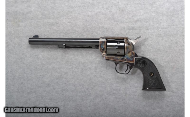 Description: SOLD Caliber Info: .357 Magnum Chambers: 6 shot Metal Condition: Excellent Bore Condition: Excellent Barrels: 7.5 inches. Triggers: SA Stock: Checkered hard black plastic with the Colt horse and eagle. Case colored receiver. Weight: 44 oz Sights: Blade front. Integral notch rear. Item Location: Richfield, WI |