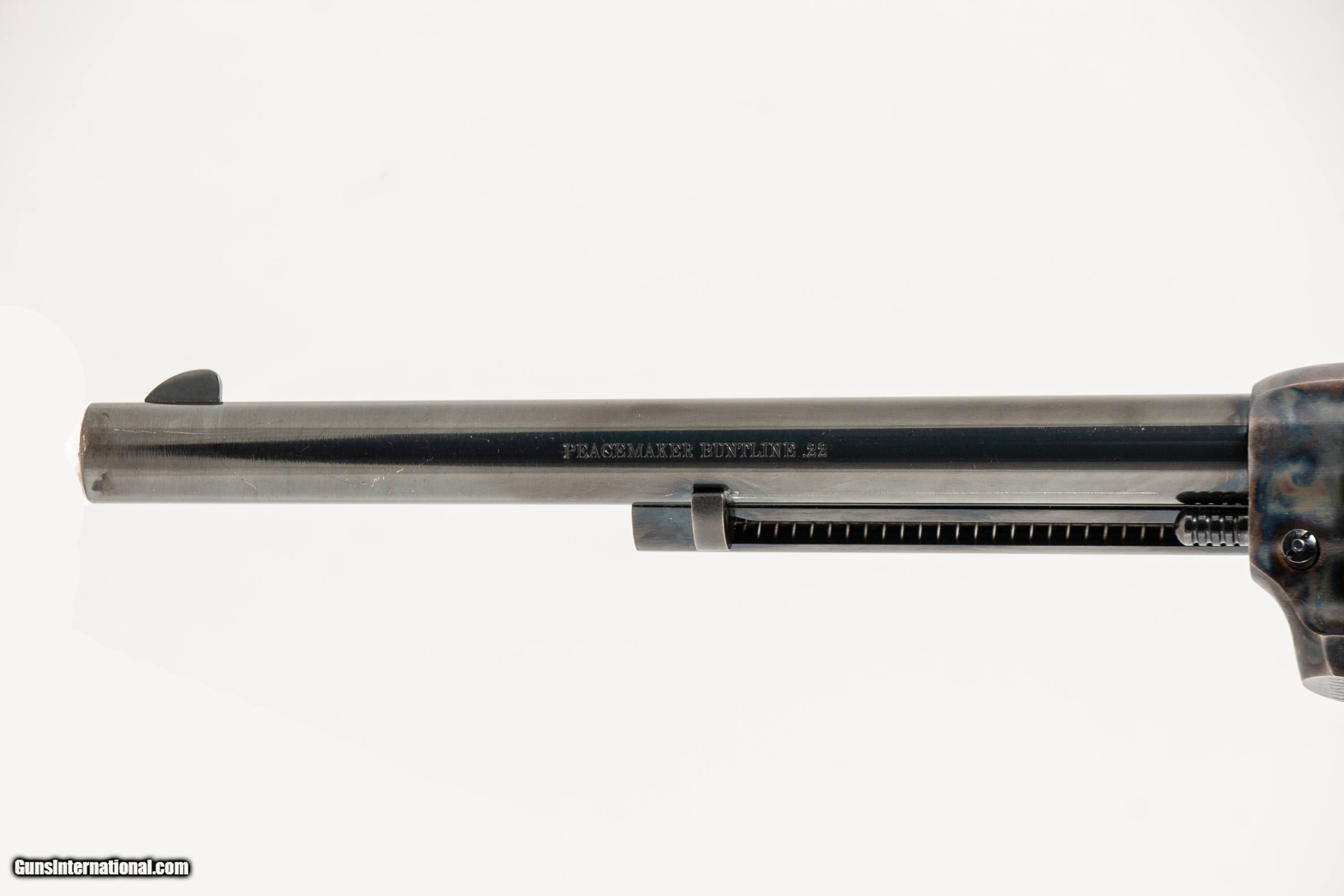 Colt Peacemaker chambered in 22 LR with a 7 1/2 inch barrel bright & shiny bore and blued frame. This gun is in excellent condition and is covered by Dury's Lifetime Warranty.