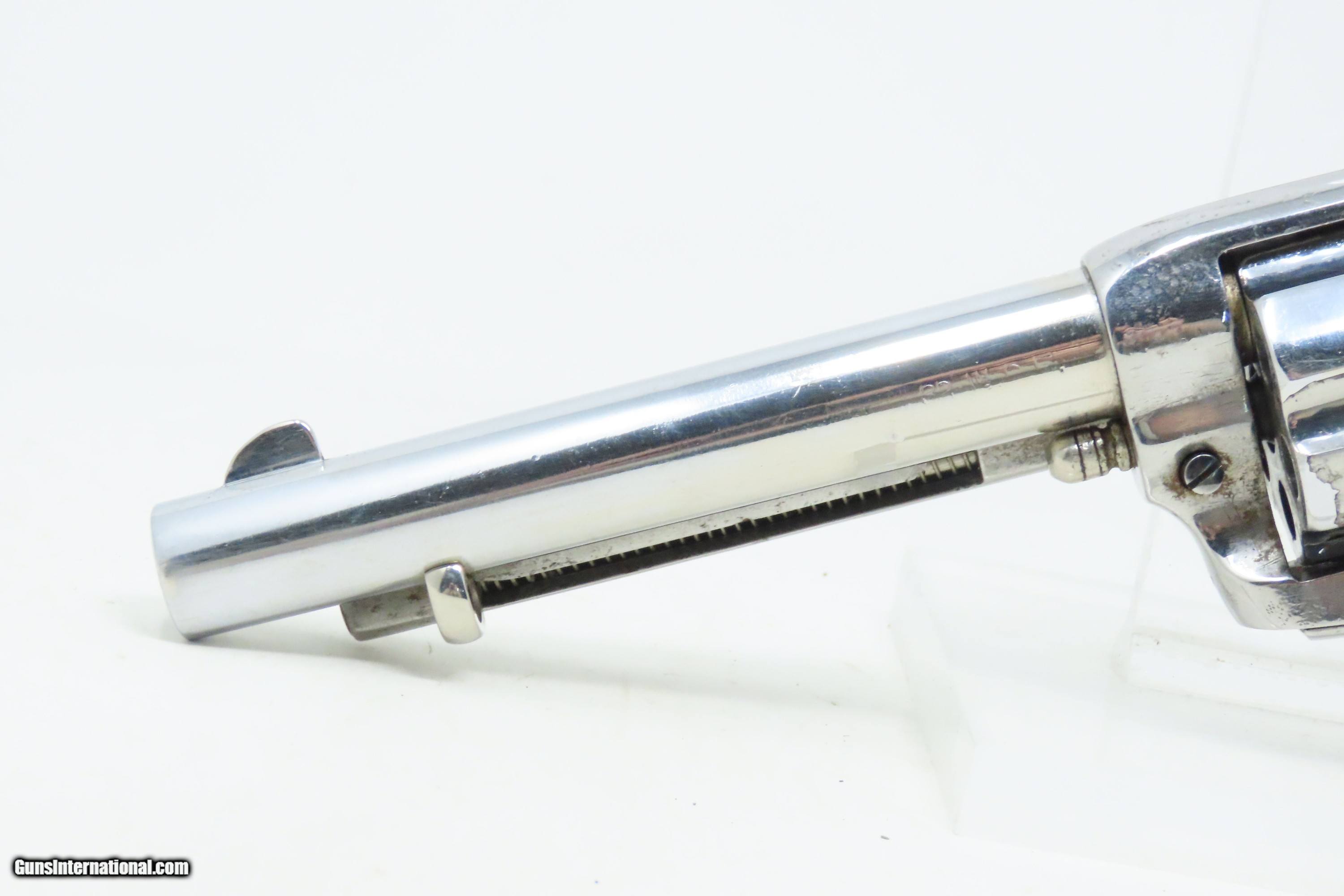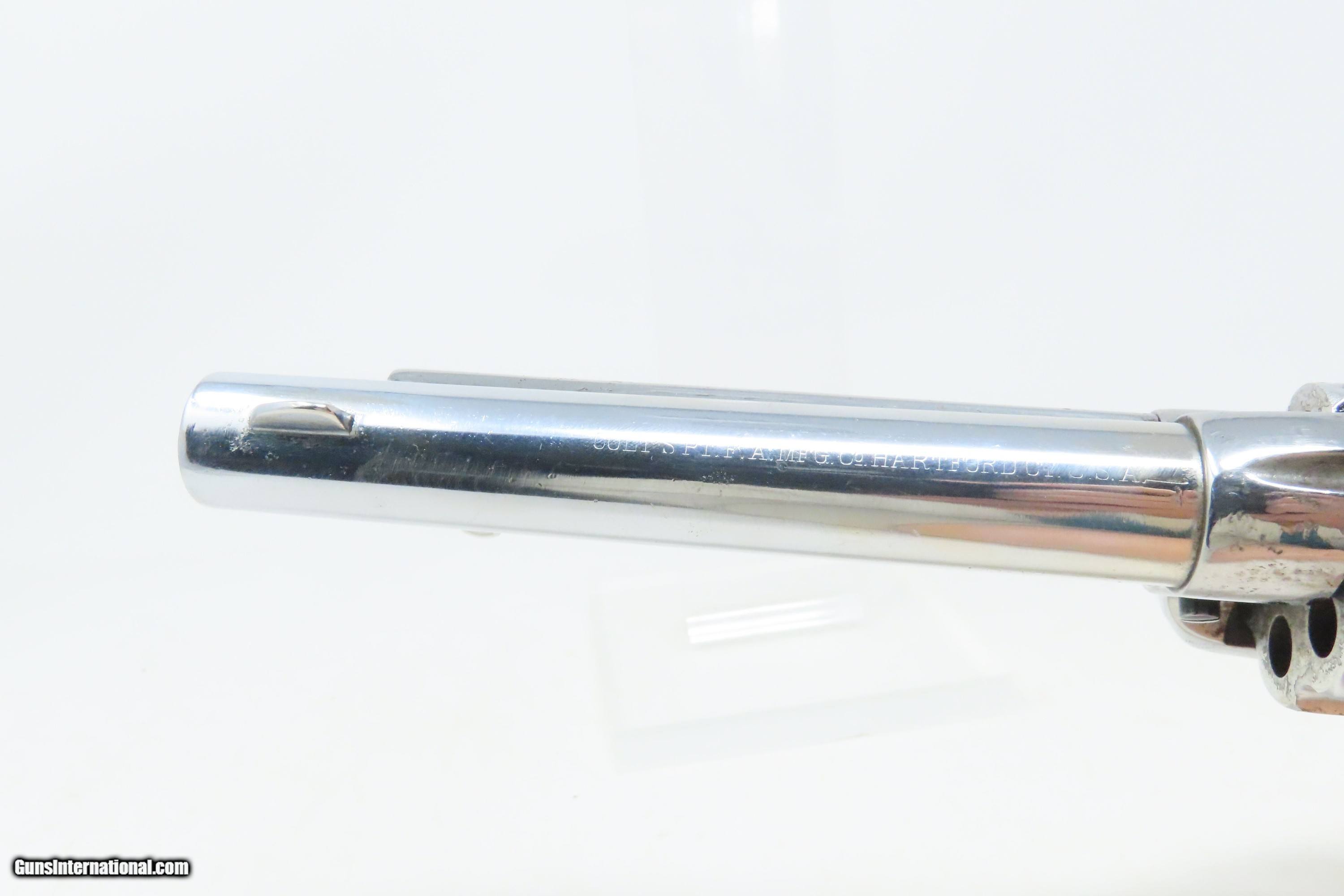 Description: COLT “PEACEMAKER” .32-20 WCF Single Action Army C&R Revolver w/HOLSTER RIG RIFLE CALIBER Colt 6-Shooter Made in 1915 STAG GRIP Here we present a C&R Colt Single Action Army Revolver, manufactured in 1915 in Hartford, Connecticut. The Colt “Peacemaker” was introduced in 1873 and has become one of the most iconic firearms in all of history, thanks to its widespread use by the U.S. military, civilians and, more recently, in Western films. Total production numbers for the Colt Single Action Army reached 357,859. The production numbers for the .32 WCF caliber reached 43,284, making this model the second most scarce out there, only ahead of the .41 Colts. These revolvers made excellent companions to rifles at the time as they were chambered for the same ammunition, meaning that the user only had to keep one type to feed both guns. Calibers, with at least thirty in all, ranged from .22 rimfire through .476 Eley, with approximately half, or 158,884, including Bisley and Flat Top Target, chambered for .45 Colt. The next most popular were the .44-40 Winchester Center Fire (.44 WCF) at 71,392, the 38-40 (.38 WCF) at 50,520, the .32-20 Winchester (.32 WCF) at 43,284, and the .41 Colt at 19,676. Though Colt enjoyed the largest contracts of any handgun maker during the American Civil War, it had to rely on its array of percussion fired revolvers, namely the 1860 Army until the Smith & Wesson owned Rollin White Patent expired in 1869. This enabled them to begin making revolvers with completely bored through cylinder chambers in order to utilize modern metallic cartridge ammunition in the most effective manner. In 1869, Colt began development of a suitable cartridge revolver in earnest, first coming out with a number of conversions for their percussion lines, until 1872 when they debuted what was to become the Colt Model 1873 Single Action Army in the 1872 U.S. Trials. Needless to say, it won, and became the Army’s revolver of choice. It also became the sidearm of choice for many others like cowboys, guards, lawmen, crooks, shopkeepers and all manner of civilians. The overall condition is very good. Refinished in nickel. The action has all four clicks and holds all three positions. The cylinder has tight lock up. The bore is bright with sharp rifling. Solid stag grips. Comes in a vintage leather holster and gun belt with cartridge loops, in good condition. This firearm is classified as a Curio & Relic. Barrel is 5-1/2 inches. Caliber: .32 Winchester Center Fire Overall condition as seen in photos. Very Fast. Very Safe. FREE SHIPPING. Will need to be sent to your local FFL or C&R licensee. This firearm is classified as a Curio & Relic. Guaranteed AUTHENTIC & Includes CERTIFICATE OF AUTHENTICITY. ancestryguns $3600 #240184 SOLD Curio/Relic: Yes |