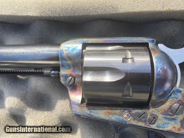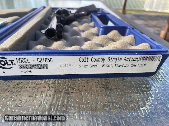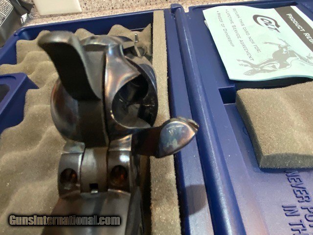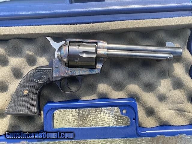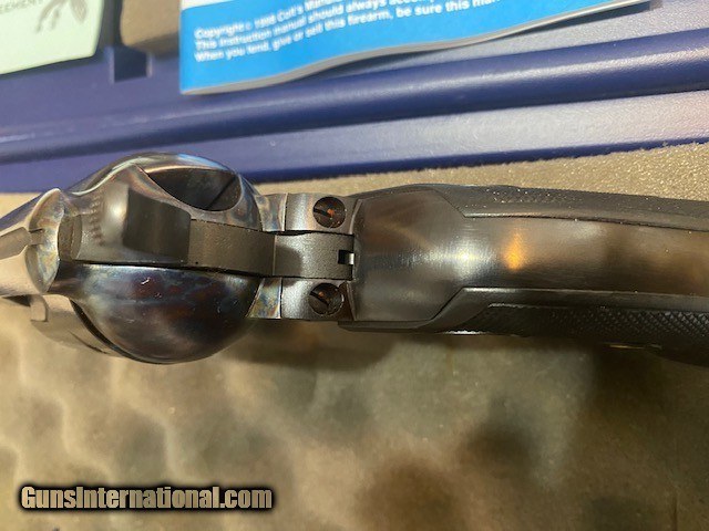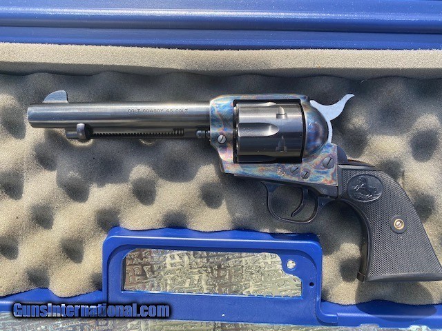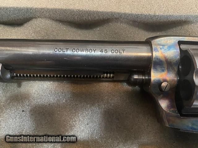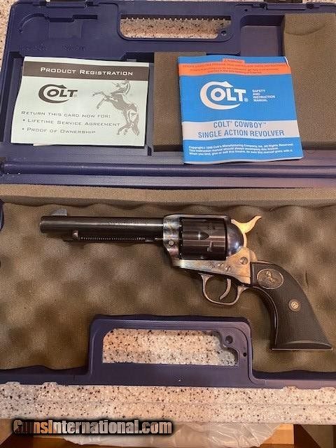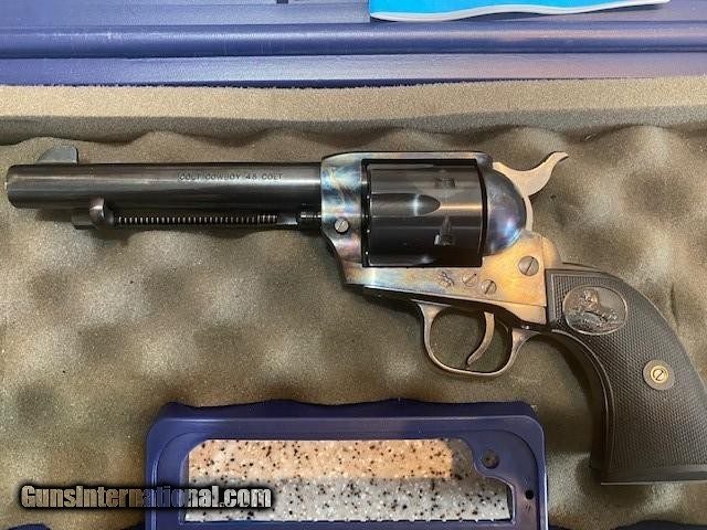 Description: Colt "Cowboy" .45 Caliber, 5.5" Barrel. Excellent Condition, lightly used, slight cylinder turn markings. Beautiful blue with original gun case. Manufactured in 2000. SOLD Handgun Caliber: .45 Colt Manufacturer: Colt Model: Cowboy Serial Number: TF06265 Bore: Excellent Condition: Excellent Metal Condition: Excellent Bore Condition: Excellent Action: Single |